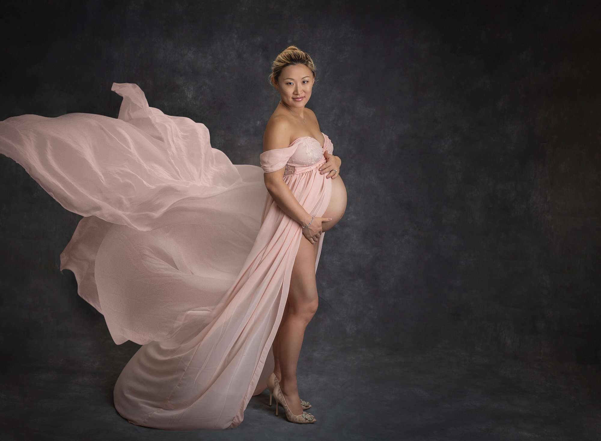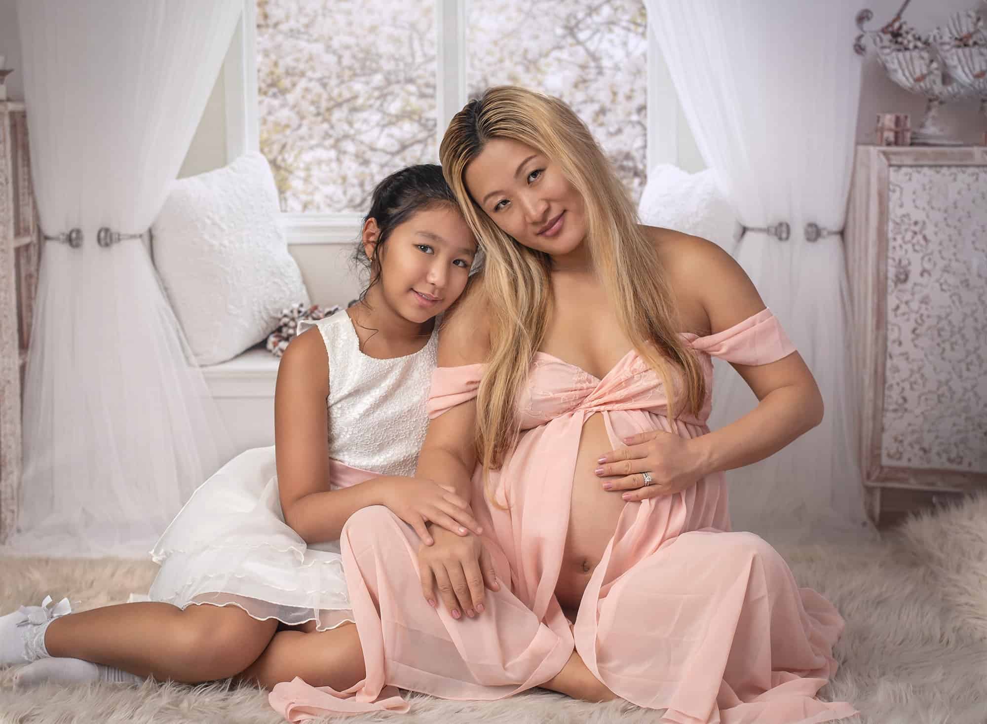 We started with her maternity photos: a minimalist but gorgeous indoor session. Mom was stunning in her flowy pink dress that was a clear display of the “girly girl” femininity that she’s sure to pass along to her new daughter.