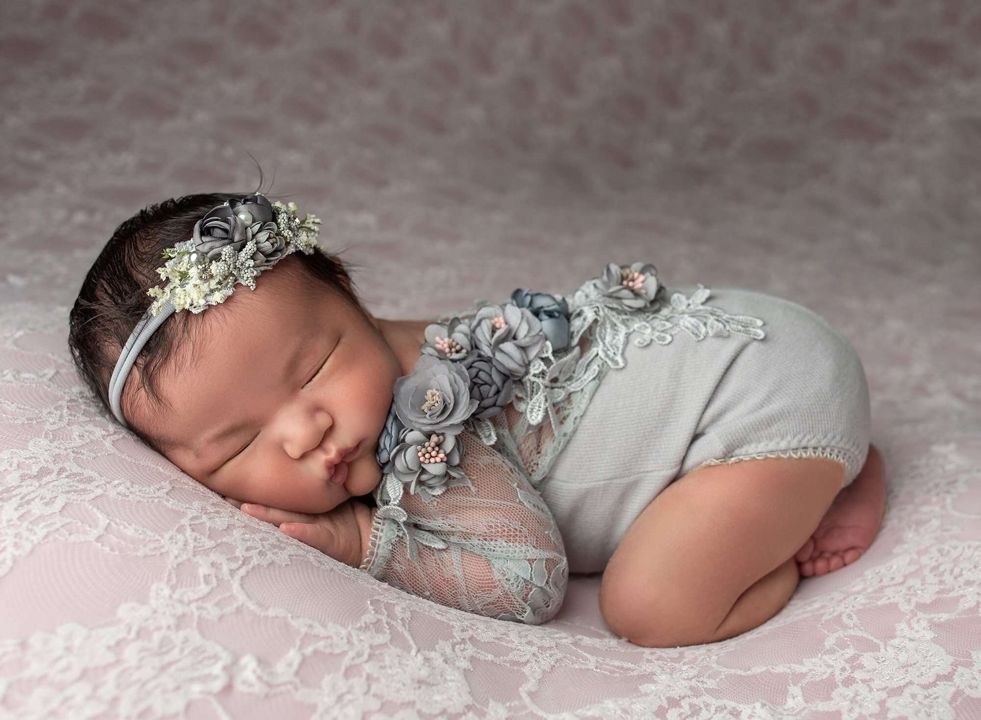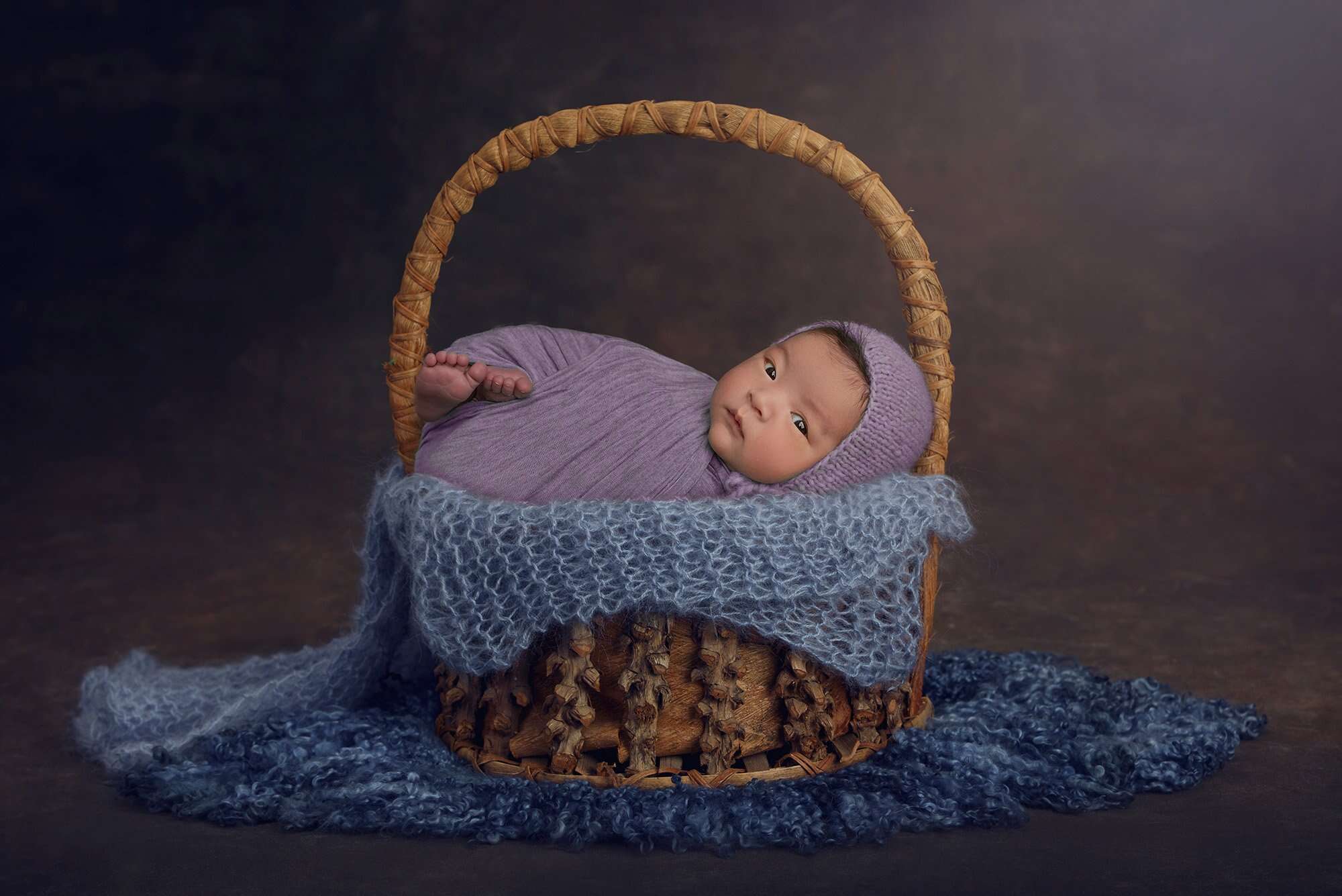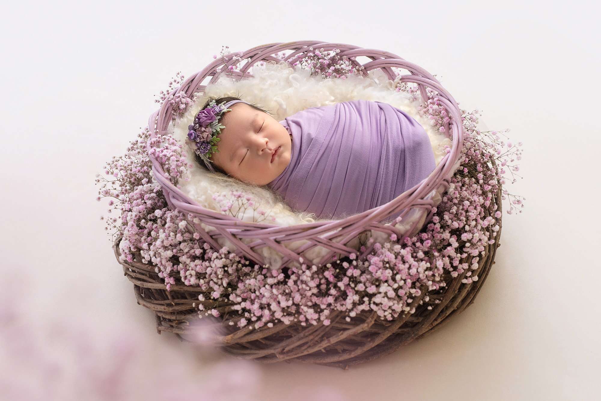 After Calisa was born, Mom wanted to pull out all the stops for her newborn photos. True to that gentle, feminine aesthetic from the maternity gallery, we decked out little Calisa in pink, purple, and white with some other mellow colors tossed in.