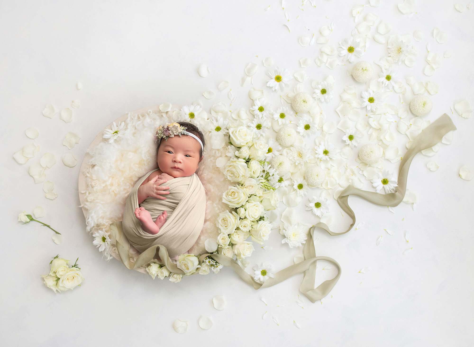 As a luxury newborn photographer, as much as I enjoy the classic and simple photo sessions, I relish any opportunity to take a more adventurous path. When Calisa’s mom-to-be called me to schedule her maternity and newborn photo sessions and told me she wanted a unique and artistic look, naturally, I couldn’t wait to dive in.