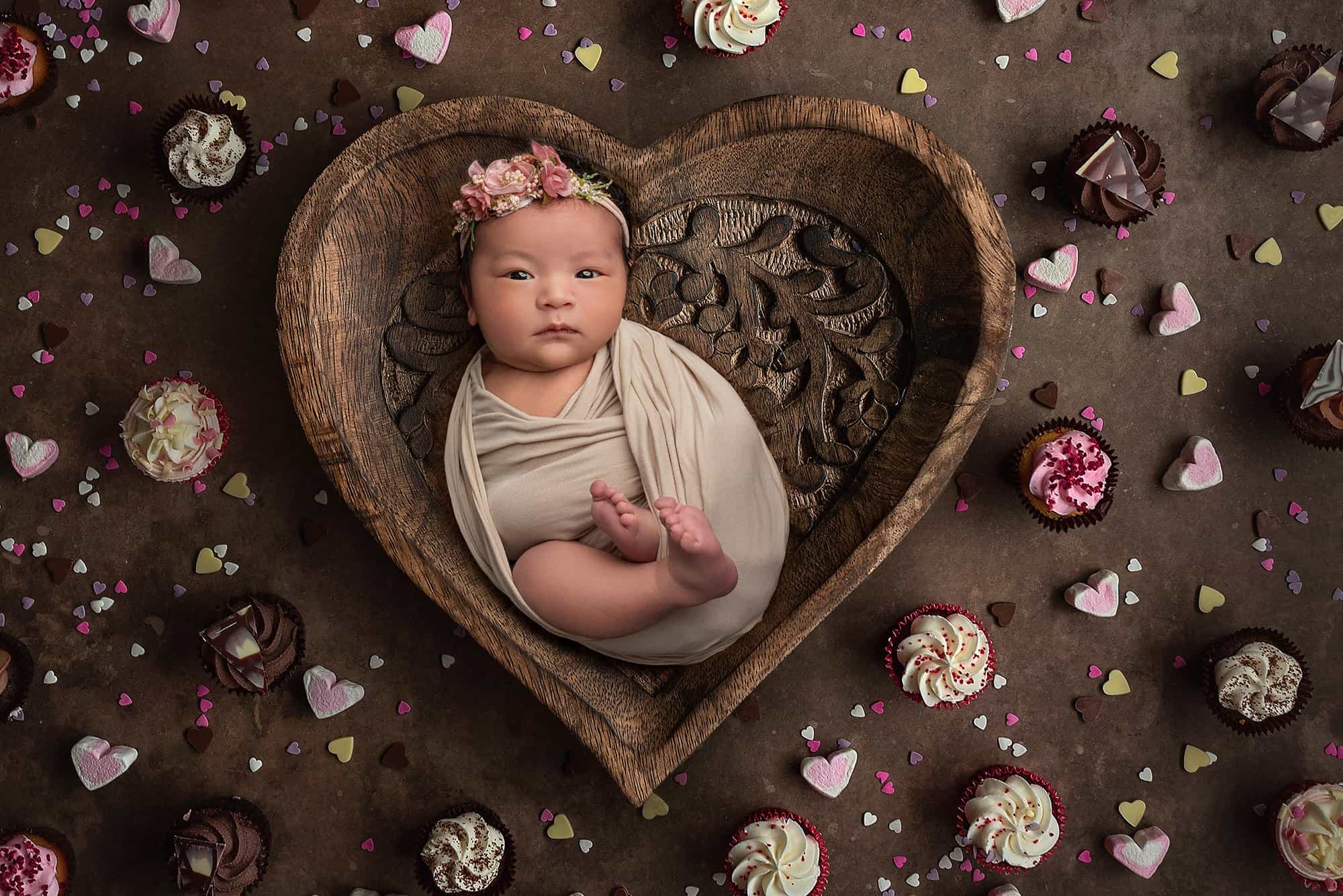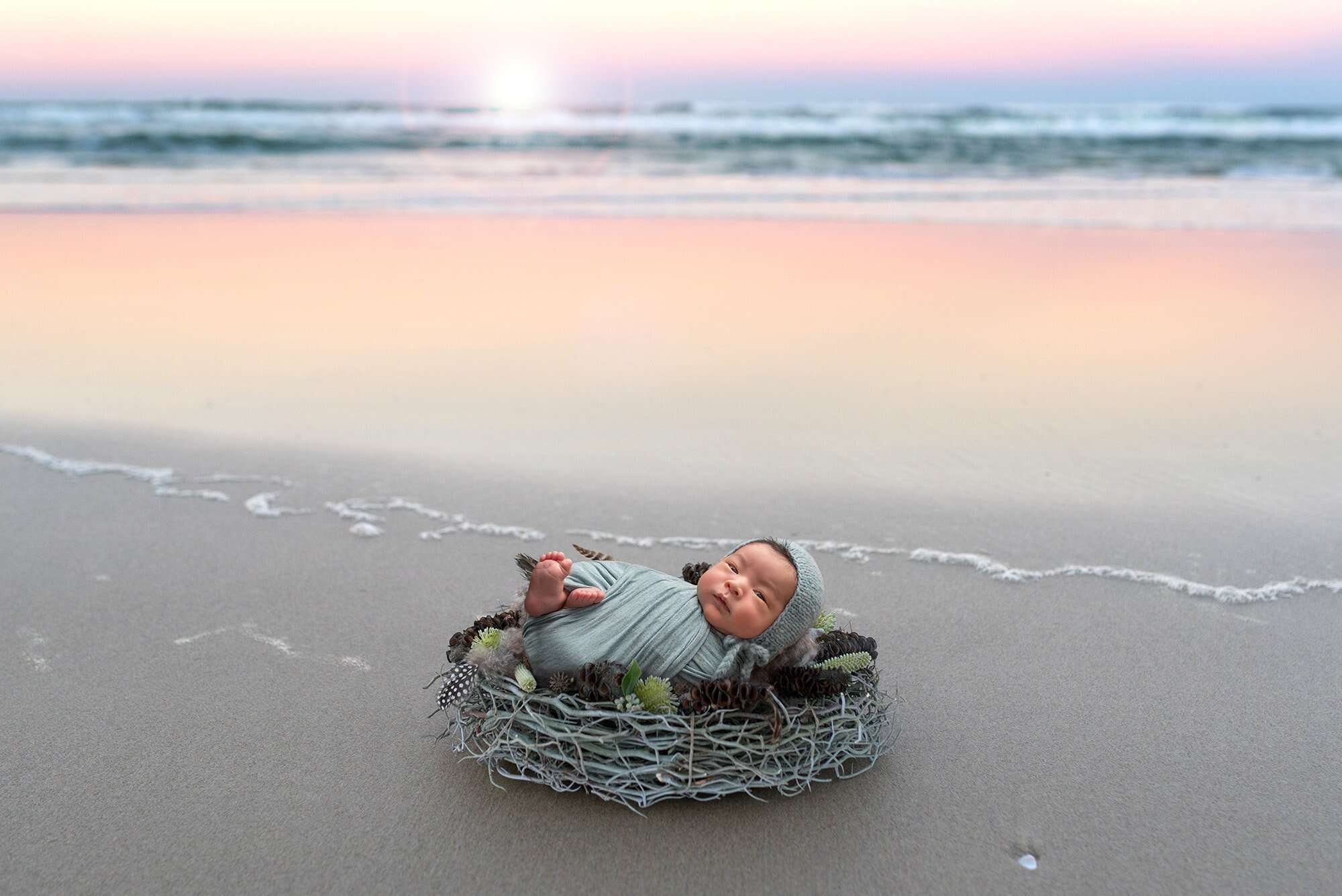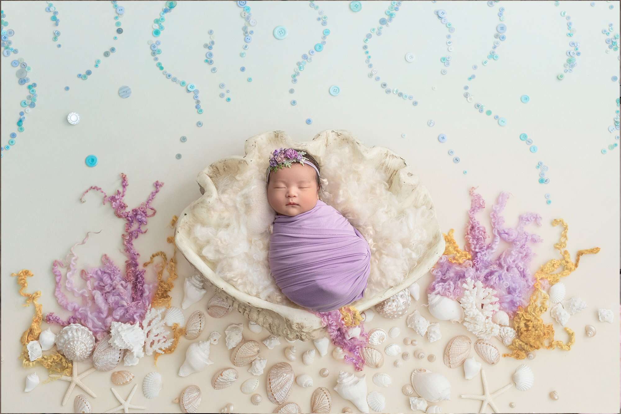 Because Mom and Dad were all in for an artistic, one-of-a-kind gallery, I had a great time pairing beautiful Calisa with all kinds of backgrounds and props. Beaches, seashells, flowers, sweets, a cozy bedroom setting, and even a unique blanket butterfly: we did it all and baby Calisa was a dream throughout the entire session.