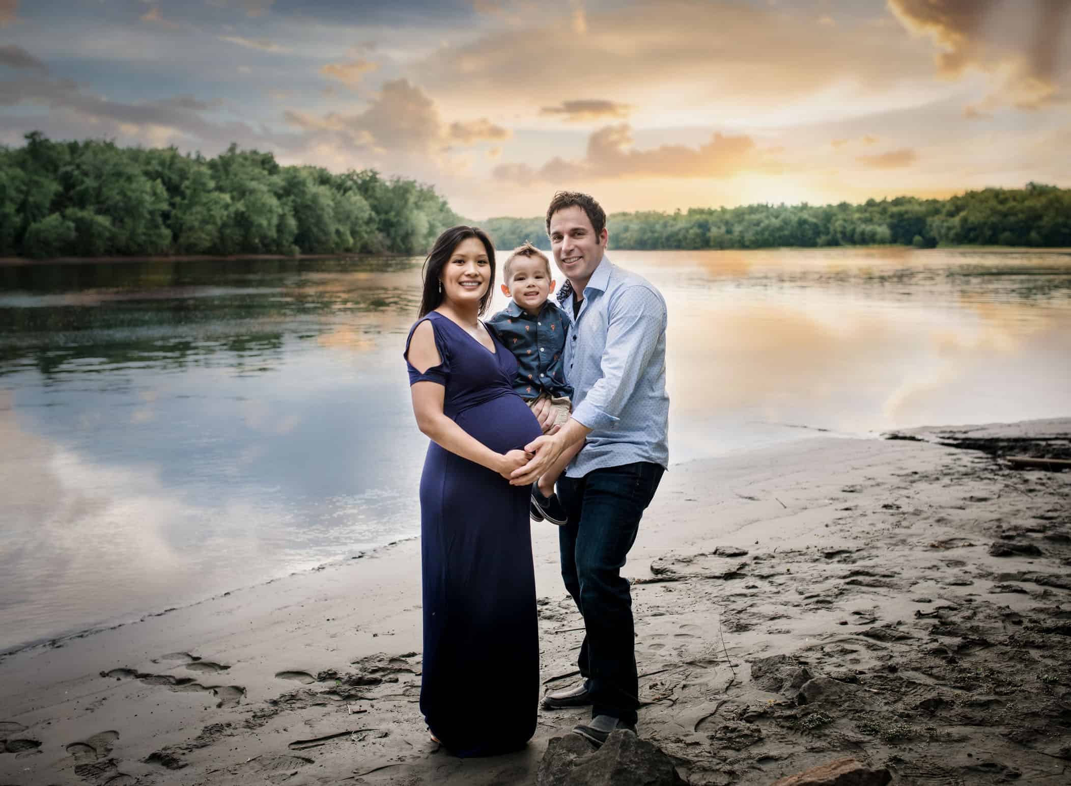 Taken right at sunset, the beauty of the Connecticut River and skyline make this beautiful summer maternity photo just stunning.