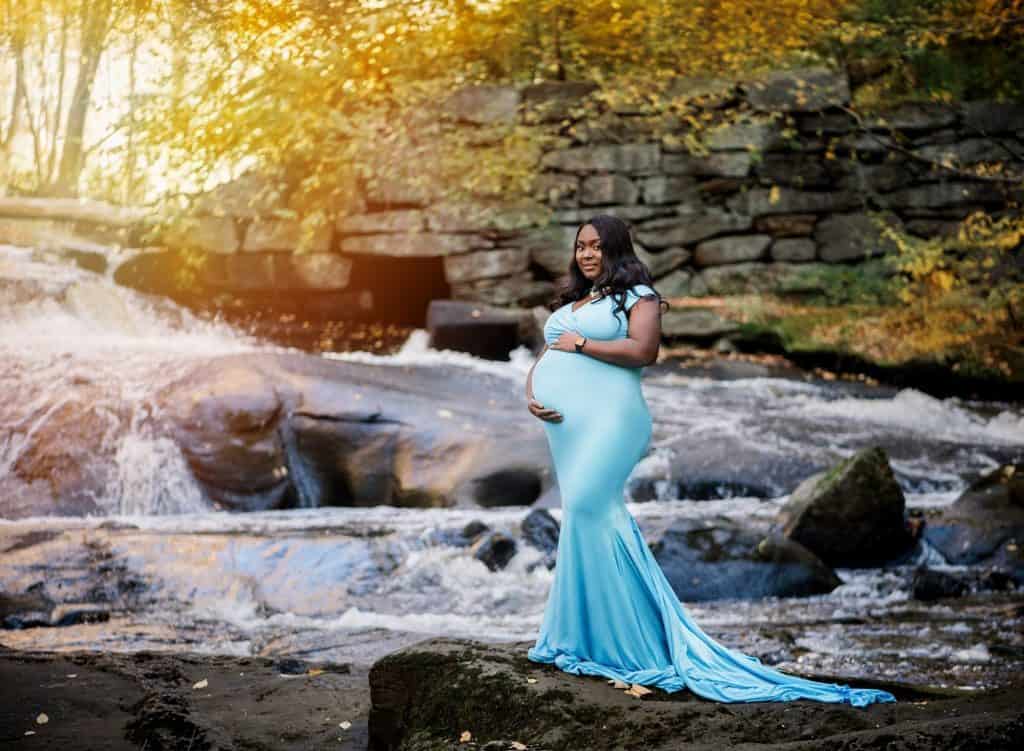Local parks, botanical gardens, and riversides make perfect backdrops. In Connecticut, a mom recently chose a riverside park for her maternity shoot. The gentle glow highlighted her silhouette and created a magical, storybook feel.
