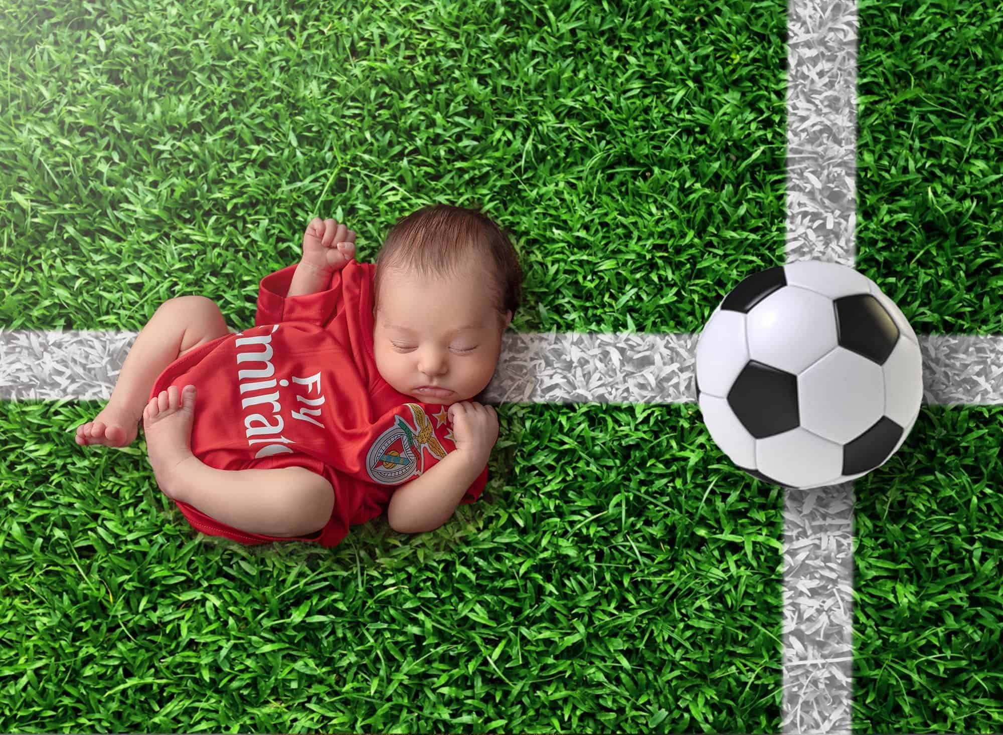 Dad is a huge soccer fan and told me that he went all the way to Europe to get his baby girl a jersey. So I had to create a photograph that combined his love of the sport with his love of his brand new baby girl. I had such a fun time creating a background that looks like a soccer field. Creating custom themed backgrounds is something I really enjoy doing for my clients because it makes their photographs perfect for them!