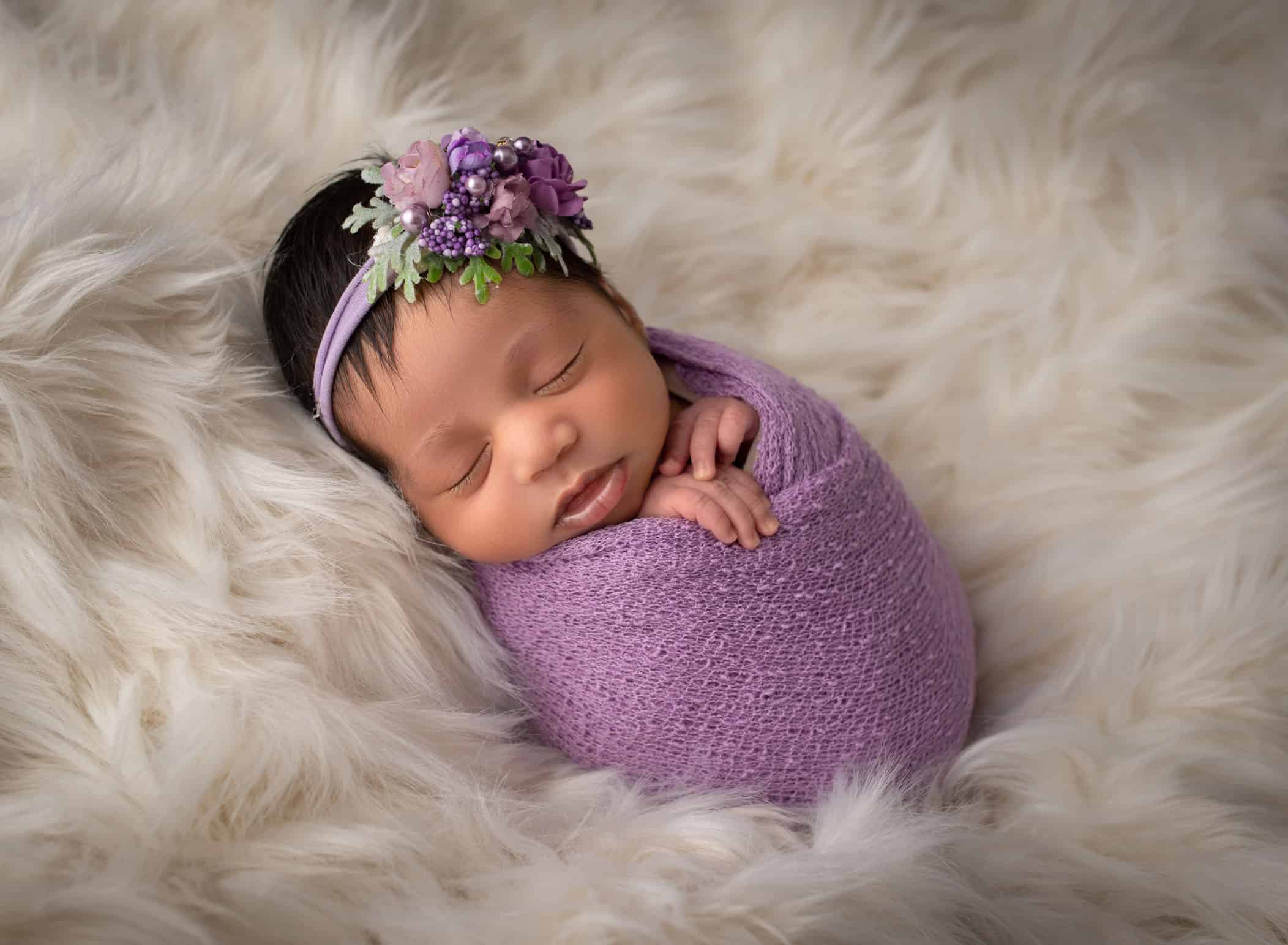 Wrapped up like a tiny potato, Veda slumbered so peaceful in this lavender colored swaddle.