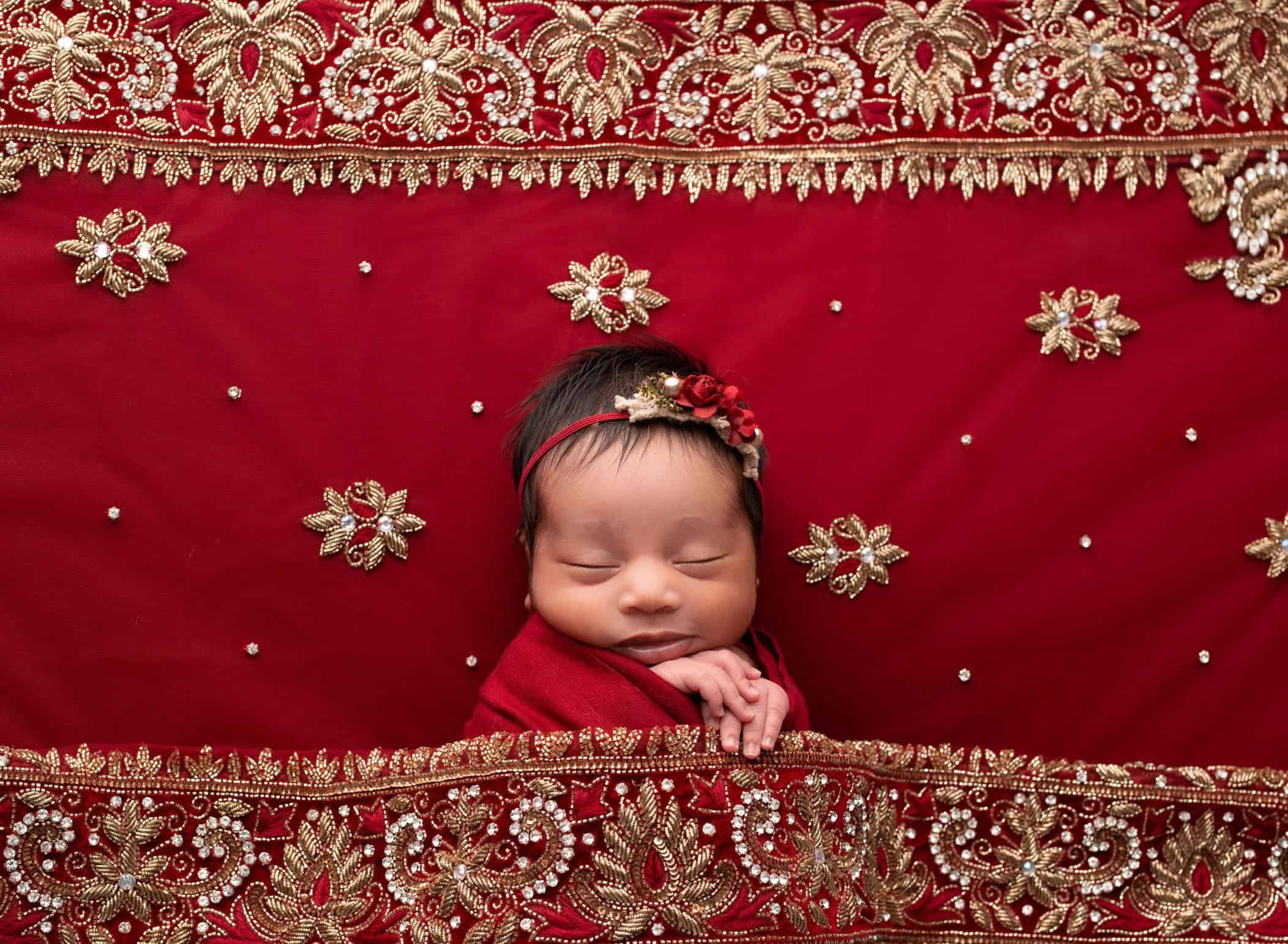 Hello, Miss Veda. It was so nice to spend time with you and your parents during your newborn photography session. Veda’s mom got in touch with me a few months before she arrived because they wanted something extra special from their newborn photographer. Wonderfully colorful newborn photos and some fun photographs too! I do hope you like what I’ve created for her family. They were an absolute delight to work with.