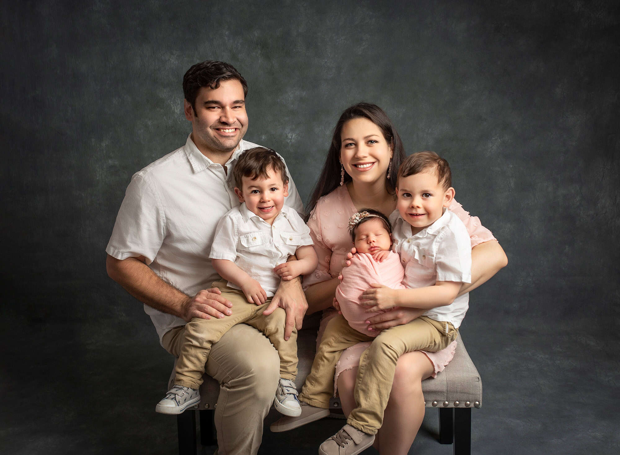 Your newborn photography CT professional will guide you through groupings that work for your specific family size and dynamics. Typically, parents form the anchor, either seated or standing, with children arranged at varying heights to create visual interest.