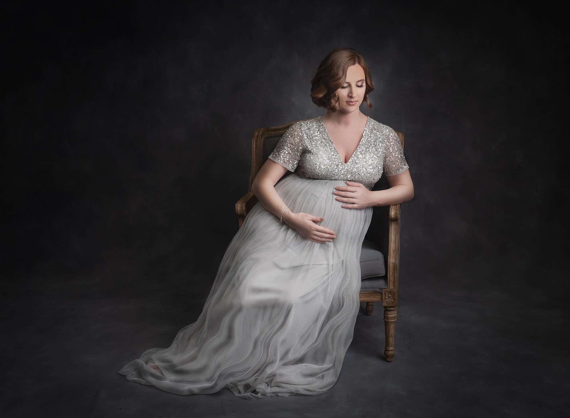 Mom and Dad are so excited about their baby boy who will be arriving very soon. Grandma was equally excited, so she came along to the maternity session at my studio as well. We had so much fun helping Mom pick out the two gowns and jewelry to go with her wardrobe choices. Mom is a woman after my own heart; she loves all things that sparkle!