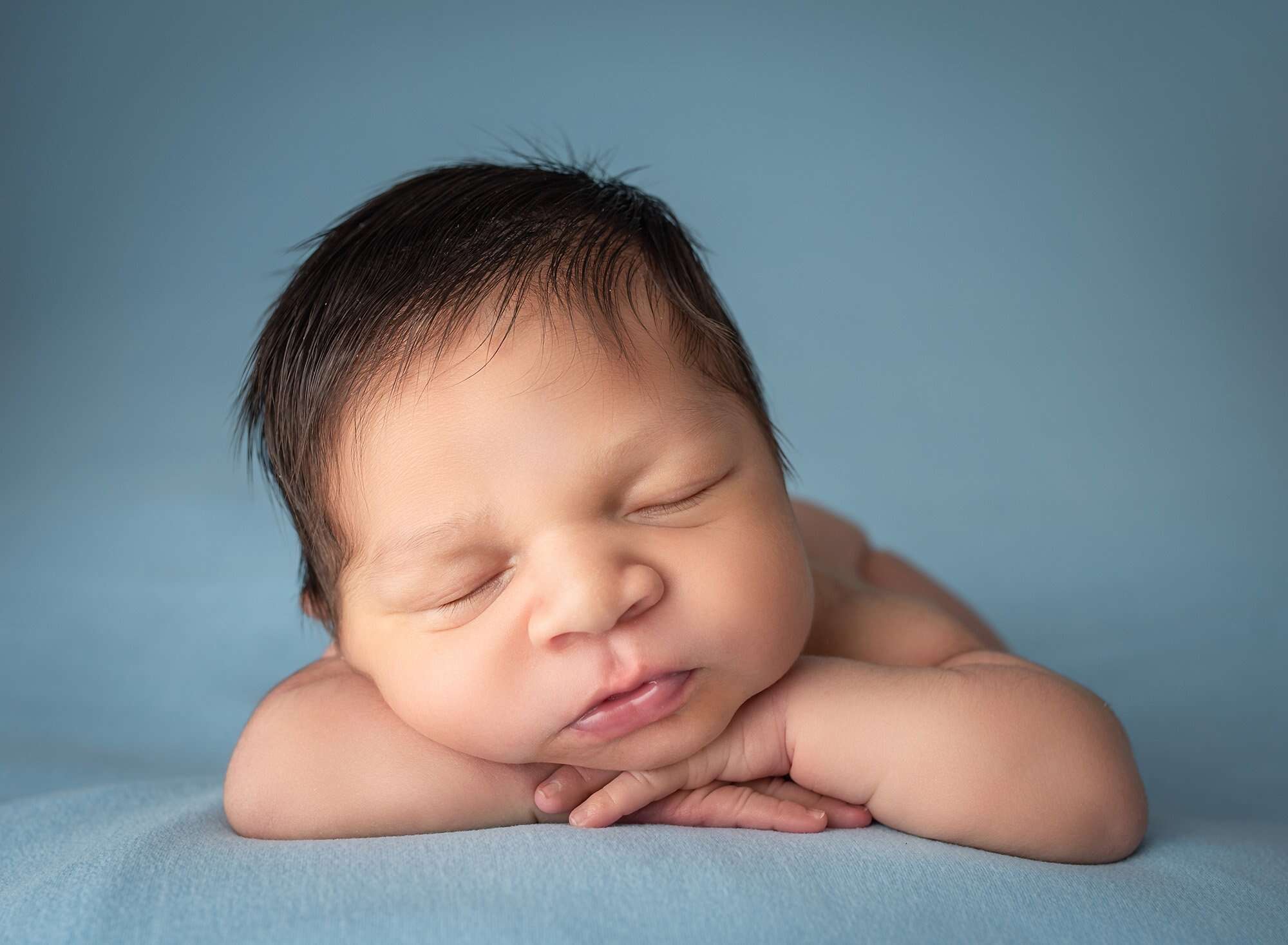 Every newborn photo session is somewhat unpredictable because newborn babies are unpredictable. Some will sleep through their entire session and never realize they left their homes. Others know that something interesting is happening and they try to stay awake to be part of the action, while some are discovering at an early age that they don’t like taking photos and they want to let us know. So when I work with a baby who’s an absolute dream like Honest, it makes the photo session that much more fun.