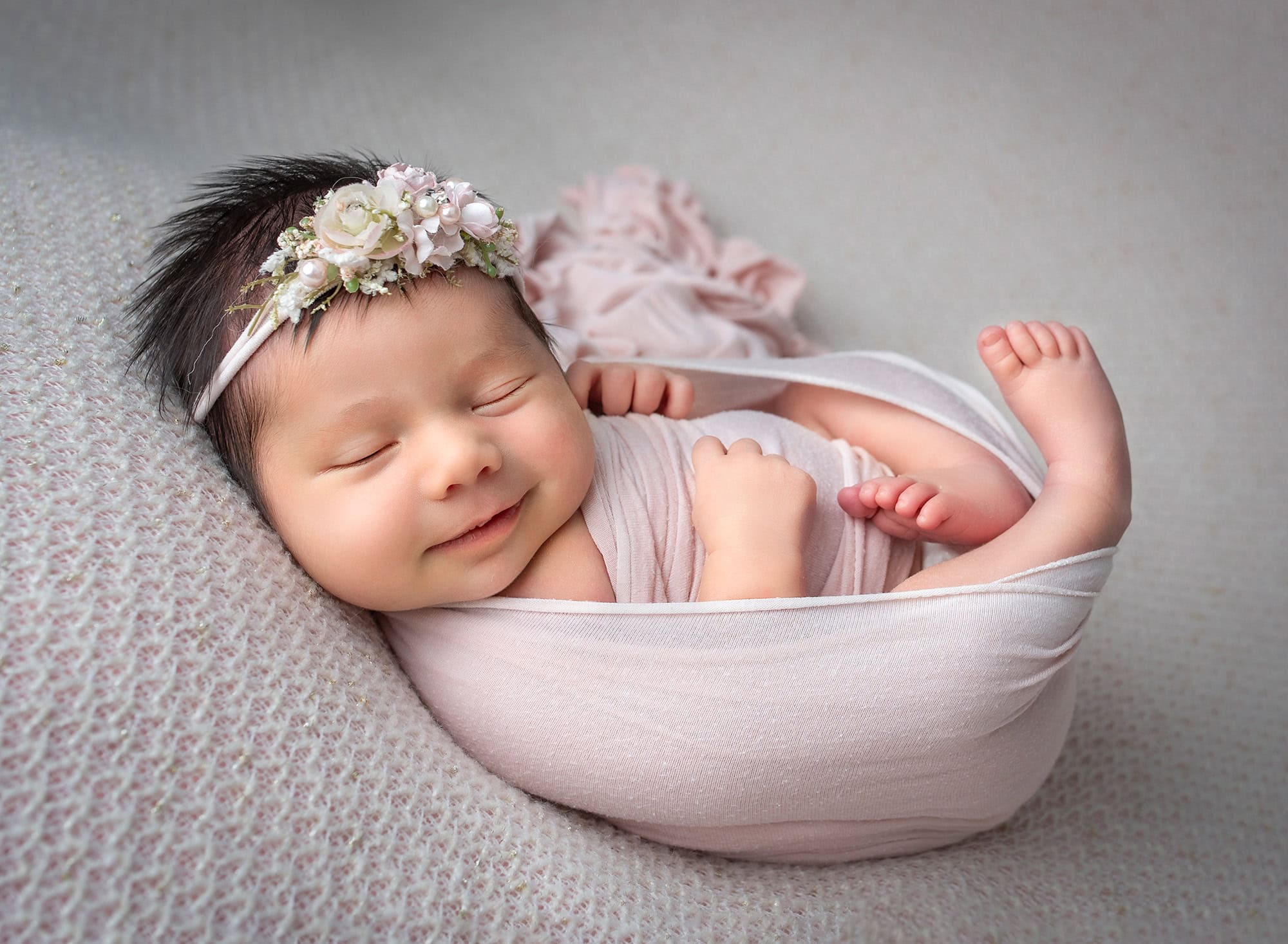 The timing of your infant photo session matters more than you might think. Newborns are most cooperative during their first 5-14 days of life, when they’re still naturally sleepy and able to curl into those adorable poses that remind us of their time in utero. After two weeks, babies become more alert and less likely to sleep deeply during sessions.
