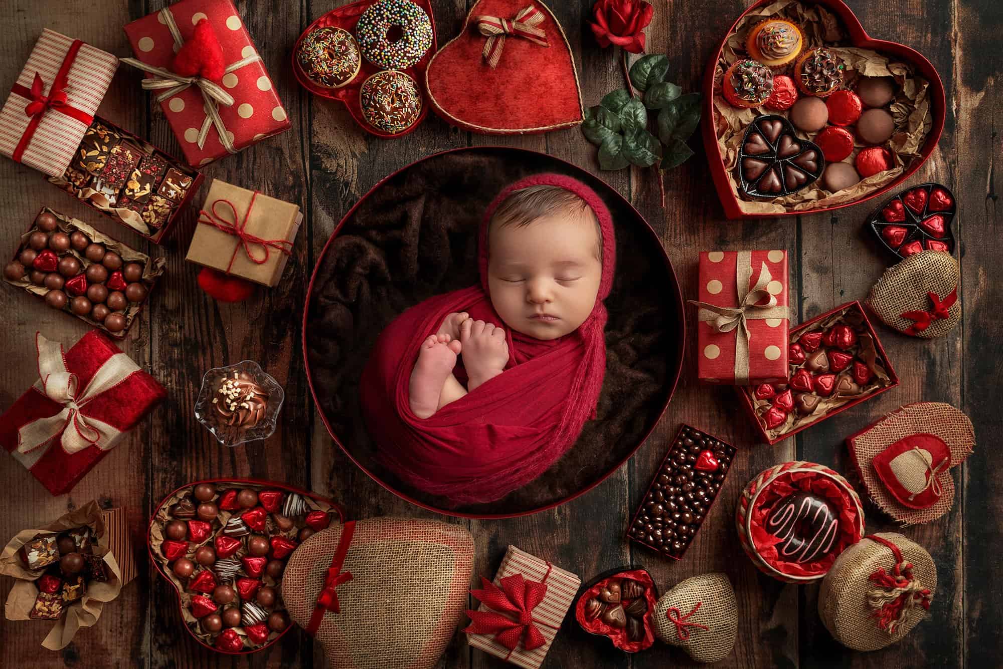 Dad is a big football fan and he’s already raising Elliott to be his tailgate party buddy, so I love the picture of Elliott in his team gear. Baby Elliott also made his debut into the world near Valentine’s Day, so we have a precious portrait of him surrounded by all the hallmarks of the holiday.