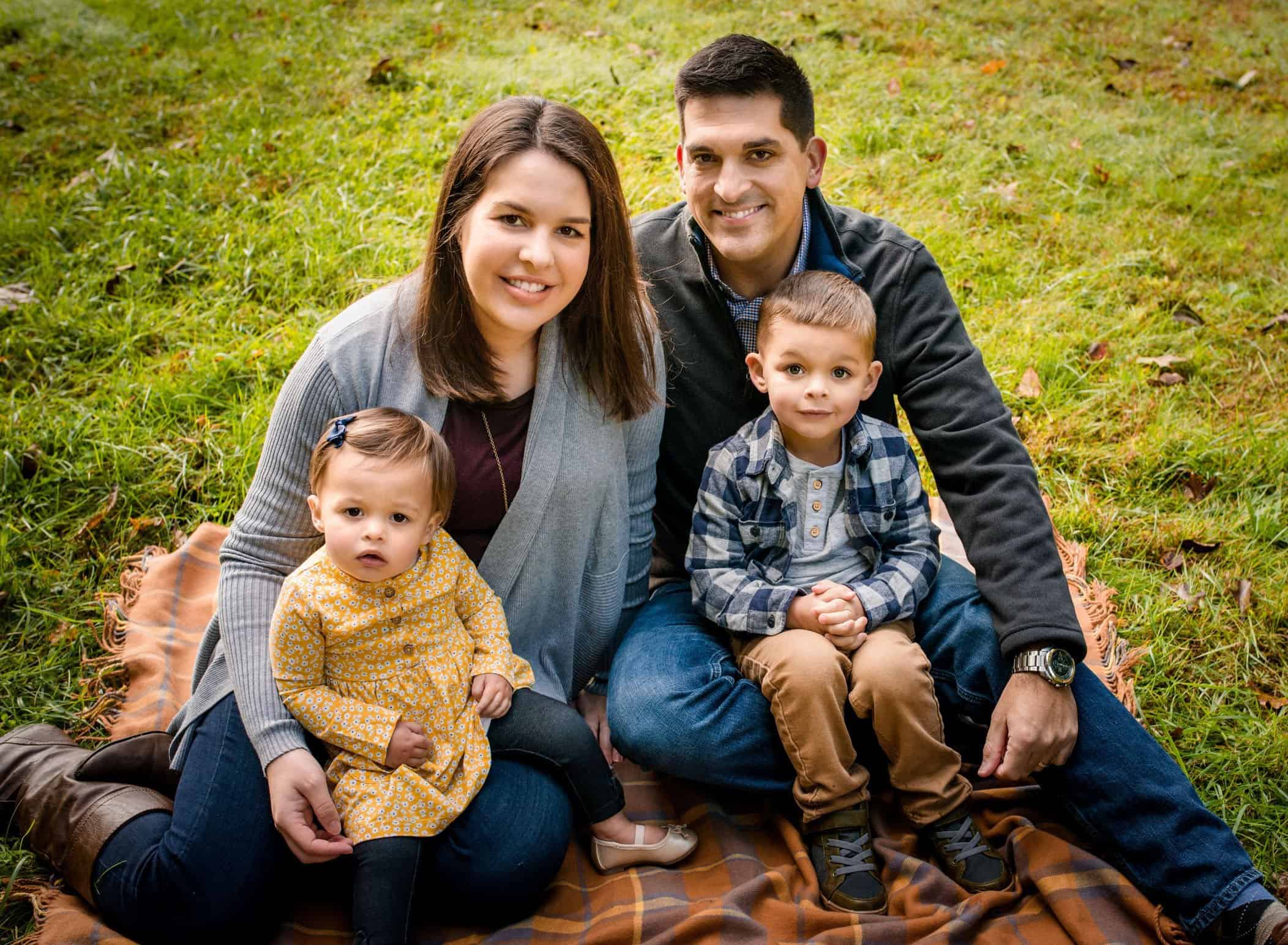 I’m always surprised at how well kids (usually) handle the weather. For this family shoot, Mom, Dad, & I were so cold! We wiggled around and pulled our sweaters tight, but 16-month old Madelyn and her 3.5-year-old brother Nathan seemed unfazed. We didn’t get a ton of smiles, but they seemed so content and handled the chill like troopers. I knew that if they could handle it without complaining, surely I could, too. Despite the cold, the lighting was just perfect! These photos are filled with a warm fall glow, and the outfits Mom and Dad picked out matched perfectly with the autumn look.
