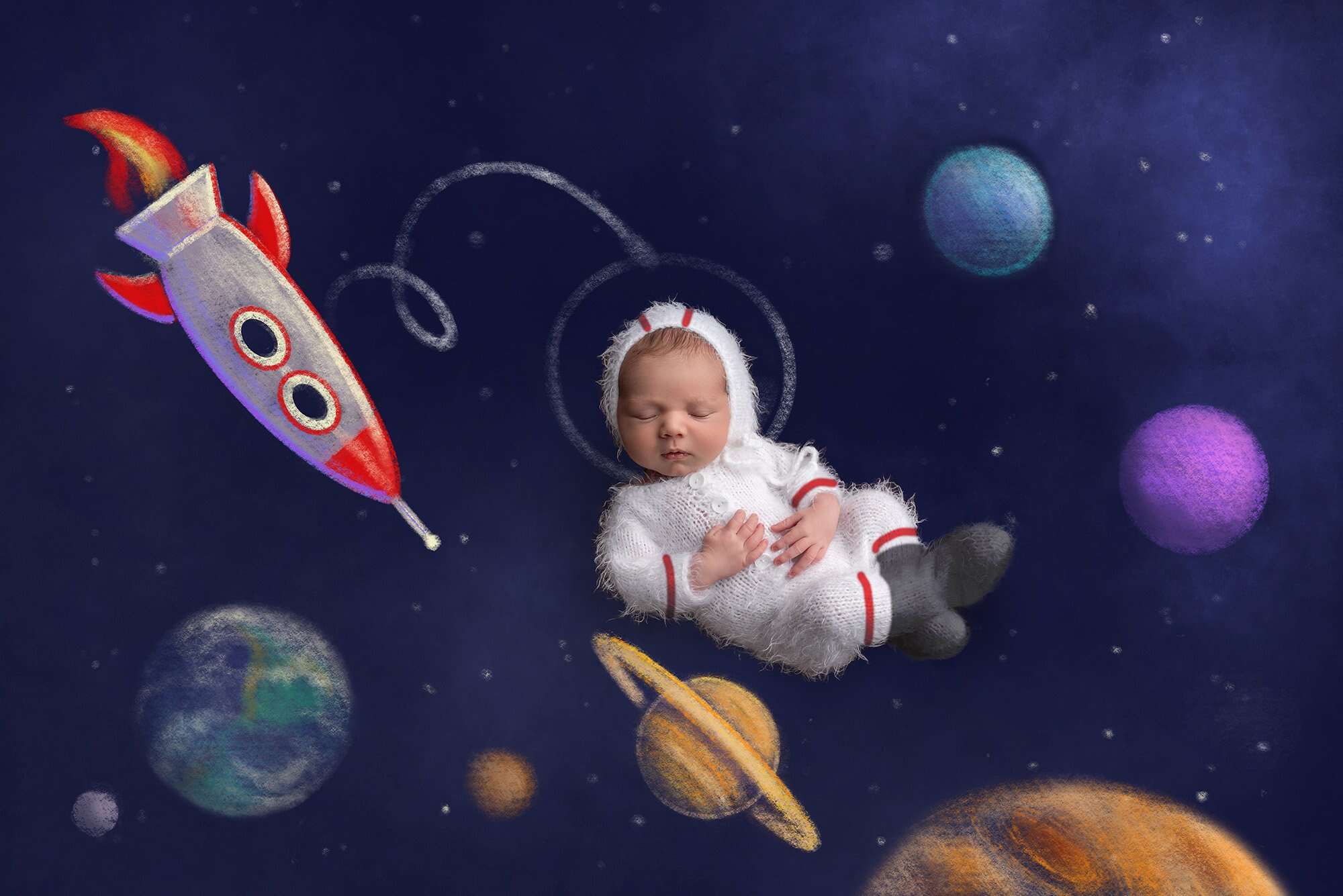 Still, Mason made sure to make the session fantastic all by himself. We were able to capture so many sweet sleepy photos, but I was glad that we had a few shots of his gorgeous little eyes opening and watching the world too. Mom and Dad also opted for a 24-inch canvas print of their astronaut-in-training floating among the planets to hang in his space-themed bedroom.