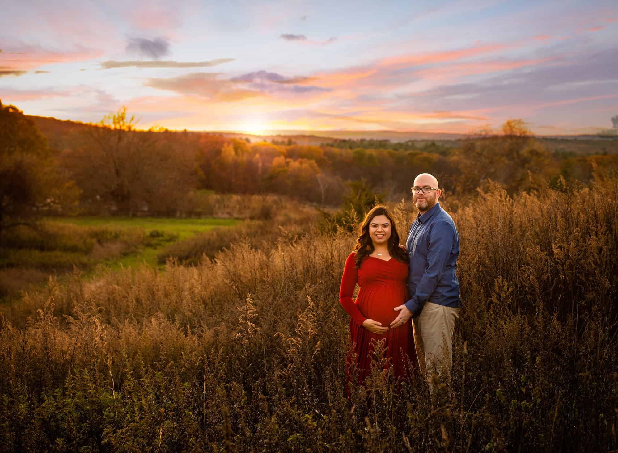 We decided that the perfect setting for their maternity photographs was this gorgeous outdoor field at sunset. The beautiful scenery only served to accent these sweet parents-to-be, their love for each other, and their excitement for the upcoming adventure of parenthood.