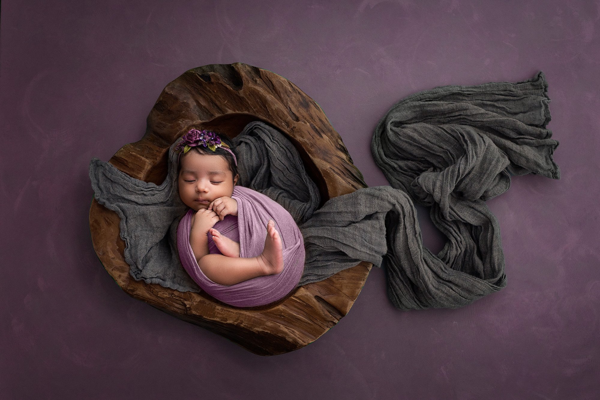 At the beginning of Viyana’s session, she was wide awake and wanted to be part of the action! She gave us some adorable photos of those beautiful, soul-warming eyes of hers. Before too long, though, she drifted off to sleep and she was such an angel, letting us pose her with ease and capture plenty of cozy, sleepy pictures. I could have photographed this little sweetie all day!