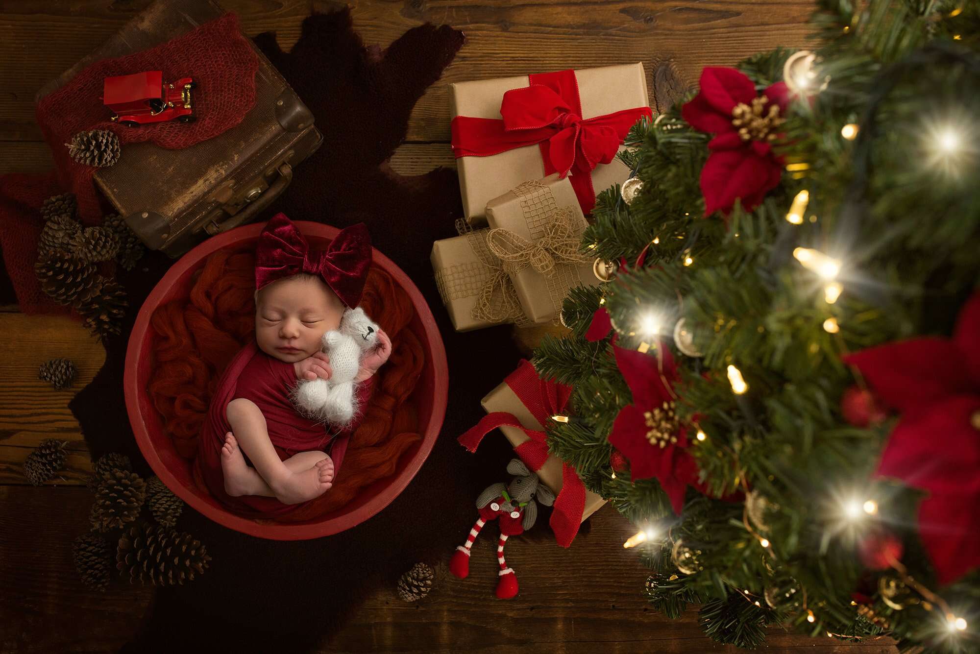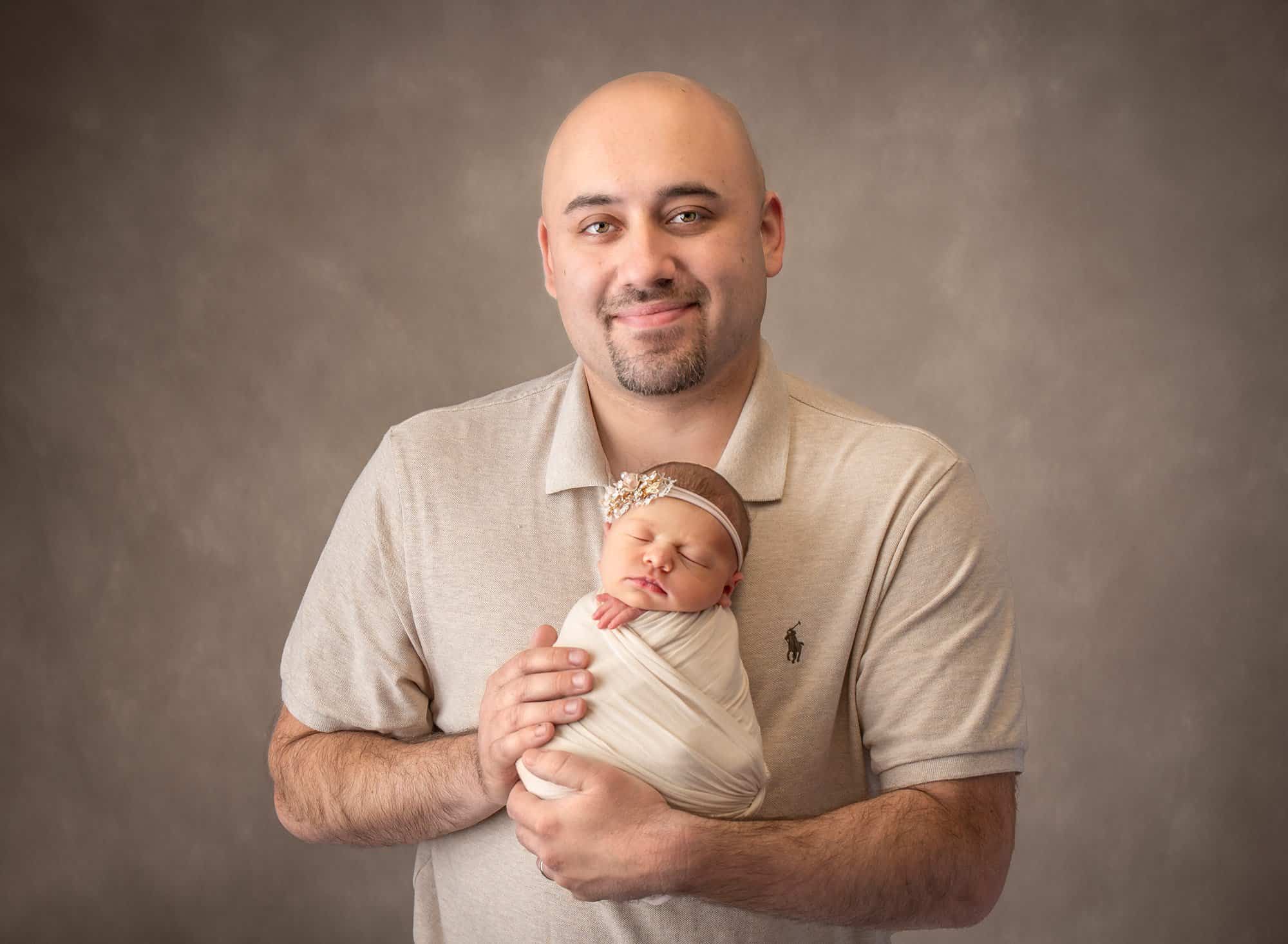 That was absolutely the case with baby Gianna and her adoring parents. Mom couldn’t have been more thrilled to have a baby girl! She loves all things sparkly, pink, floral, and feminine, and she’s excited to share these joys with her new daughter. Dad, meanwhile, is just elated to have these two important ladies in his life and to have the privilege of holding them safe and sound in his arms. The cozy Christmas photo we captured speaks to exactly the way Gianna’s parents see her: as the most precious gift in their world.