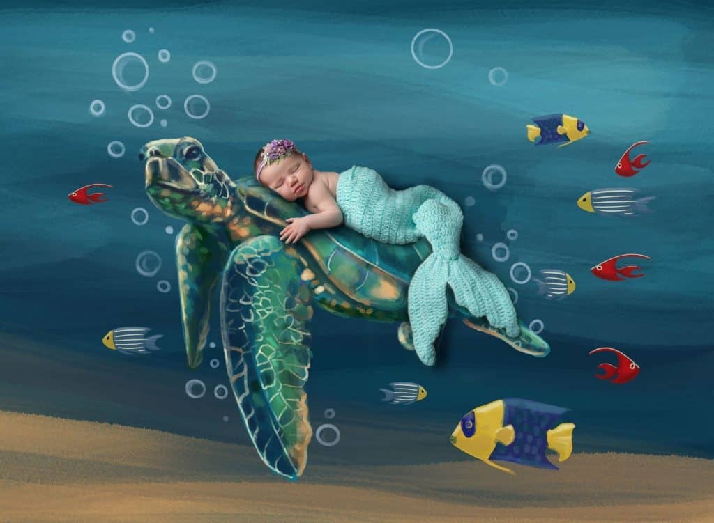 These newborn photo backgrounds make each portrait feel unique and memorable, capturing the serenity and wonder of underwater life.