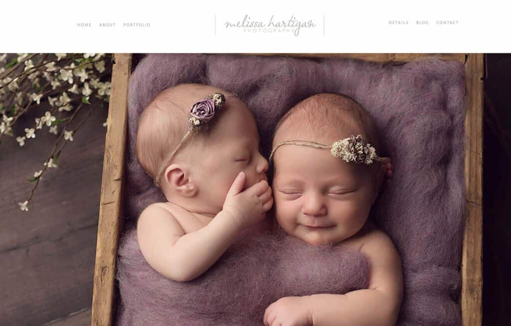 | Melissa Hartigan Photography | Timeless, classic, softly styled | Private studio setting, gentle posing, serene and polished aesthetic | Families wanting elegant, traditional newborn portraits in a calm studio environment |