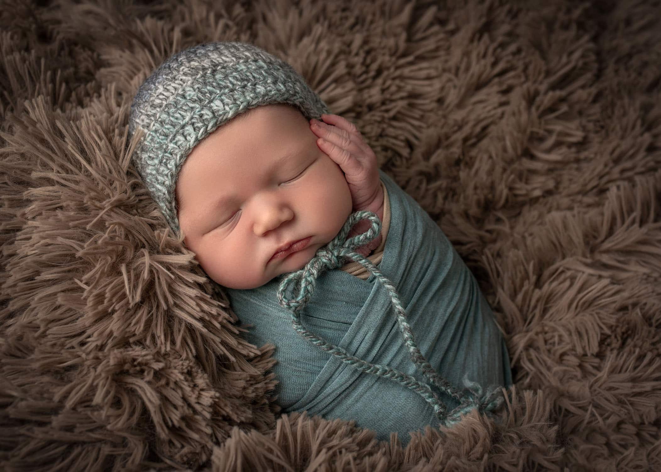 One of the benefits of using my newborn photography studio is that’s you get to choose from all of the charming props that I have to make your session special. I have a “little boy drawer” full of bonnets, sunglasses, pants, shorts, sports balls, and even a cowboy hat. But this simple bonnet on Jack made his portrait simply adorable.