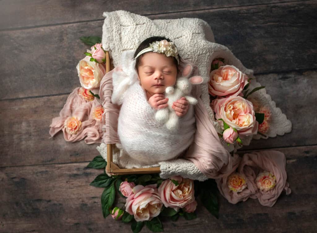 The next step in newborn photography with props is curating the perfect pieces for your session. Photographers select props that match the chosen theme and, most importantly, keep the baby comfortable and safe. Think soft wraps, cozy baskets, and delicate headbands.