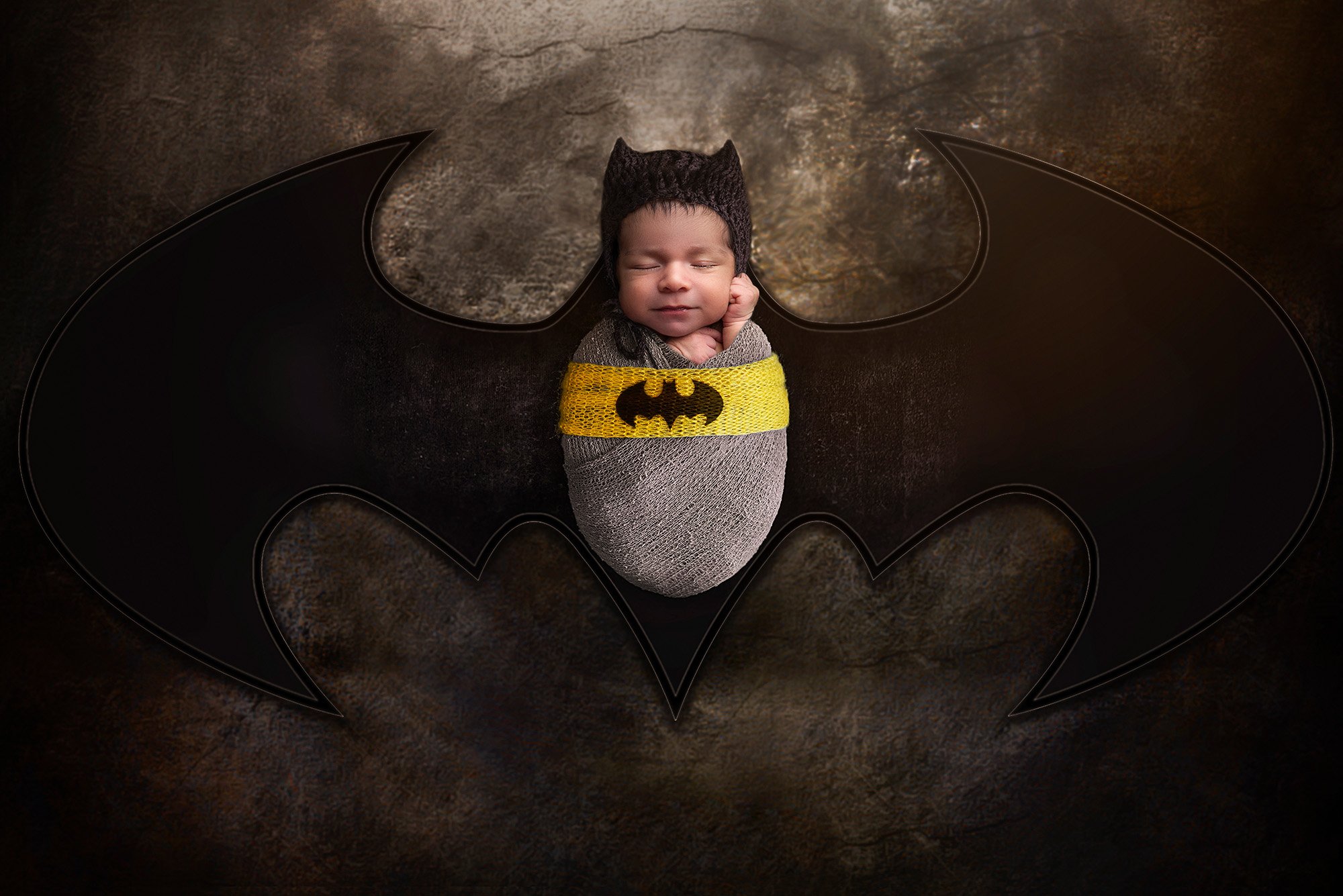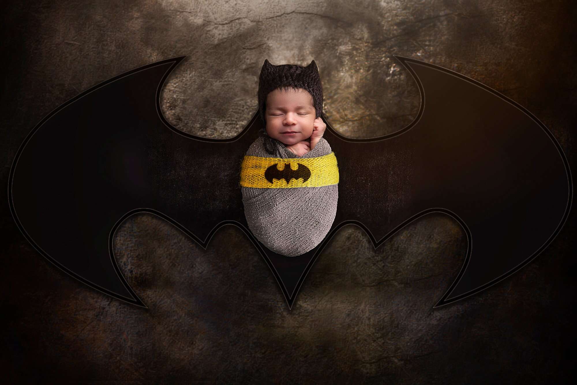 Finally, we made sure to incorporate Batman into Miles’s newborn photos too! His dad is a big Batman fan and he can’t wait to share the lore with his boys as they grow up. It was only fitting that we put Miles in his very own baby bat suit for one of his portraits, and for Mason and Miles, we couldn’t resist the Batman and Robin costumes!