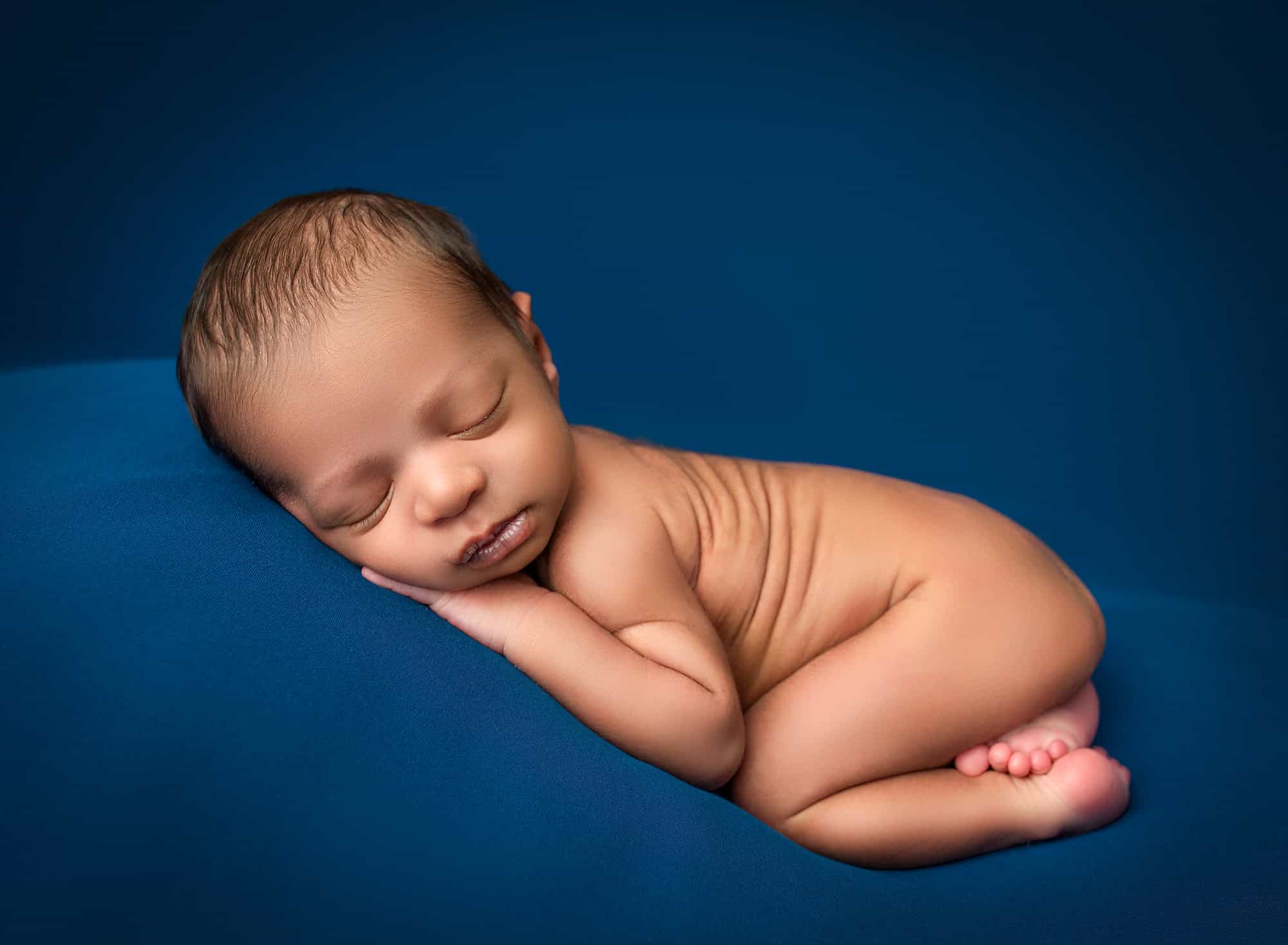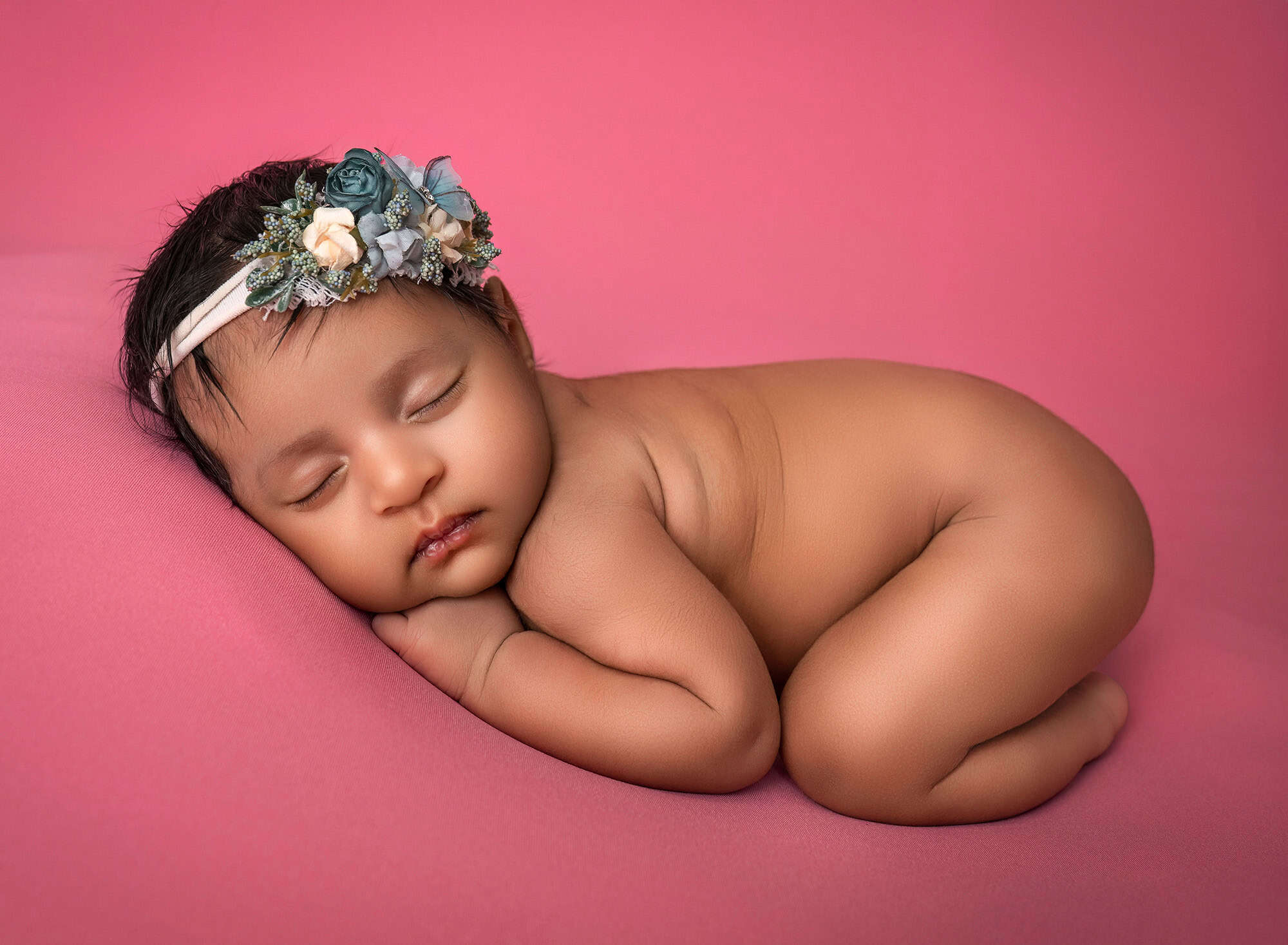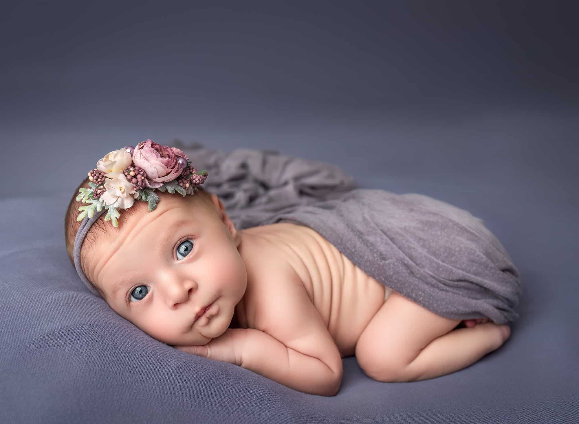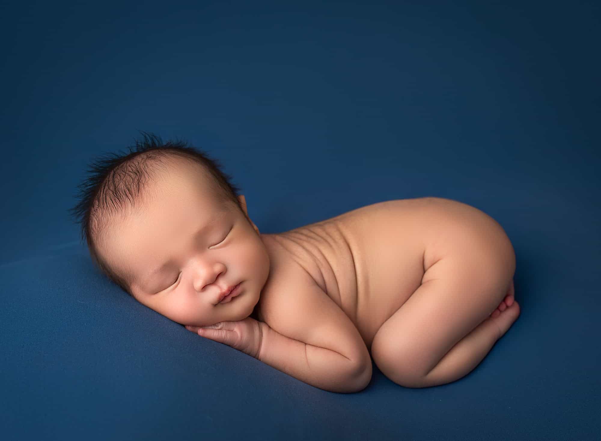 Simple poses can be done either naked and with a wrap covering their back and bottom OR wearing an outfit. If an outfit is chosen, baby will wear the same outfit for all of the simple poses to give us the greatest chance of getting the most photographs from this series. Newborn outfits are provided and will be chosen by the parents the day of the session.