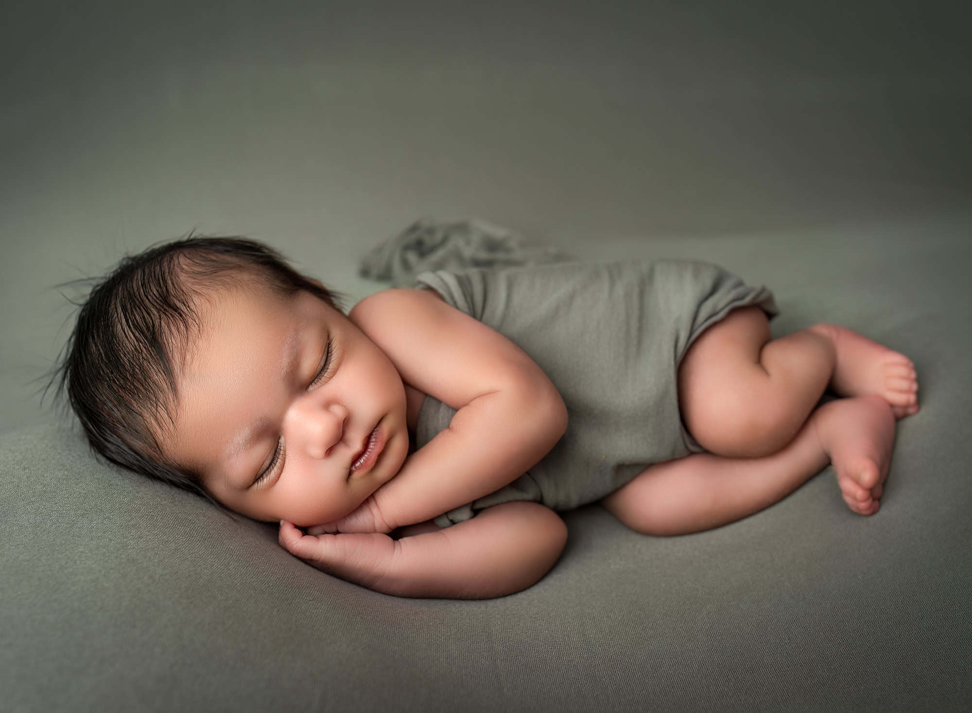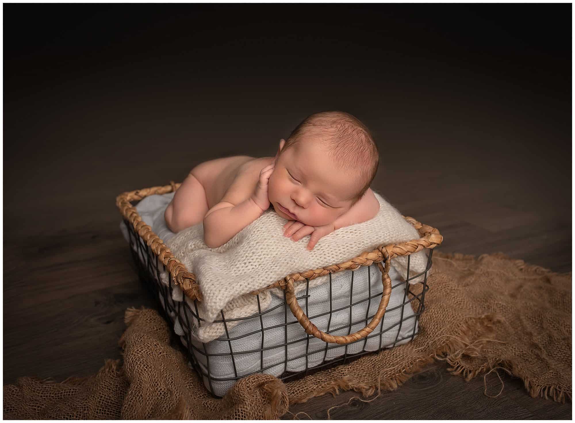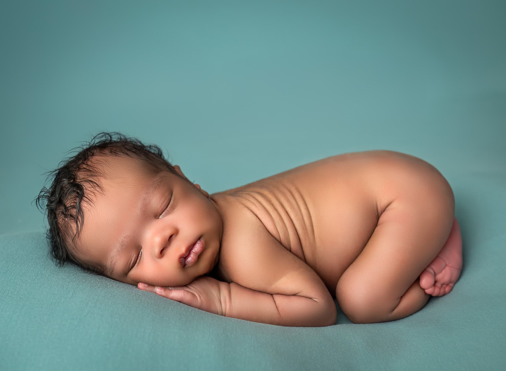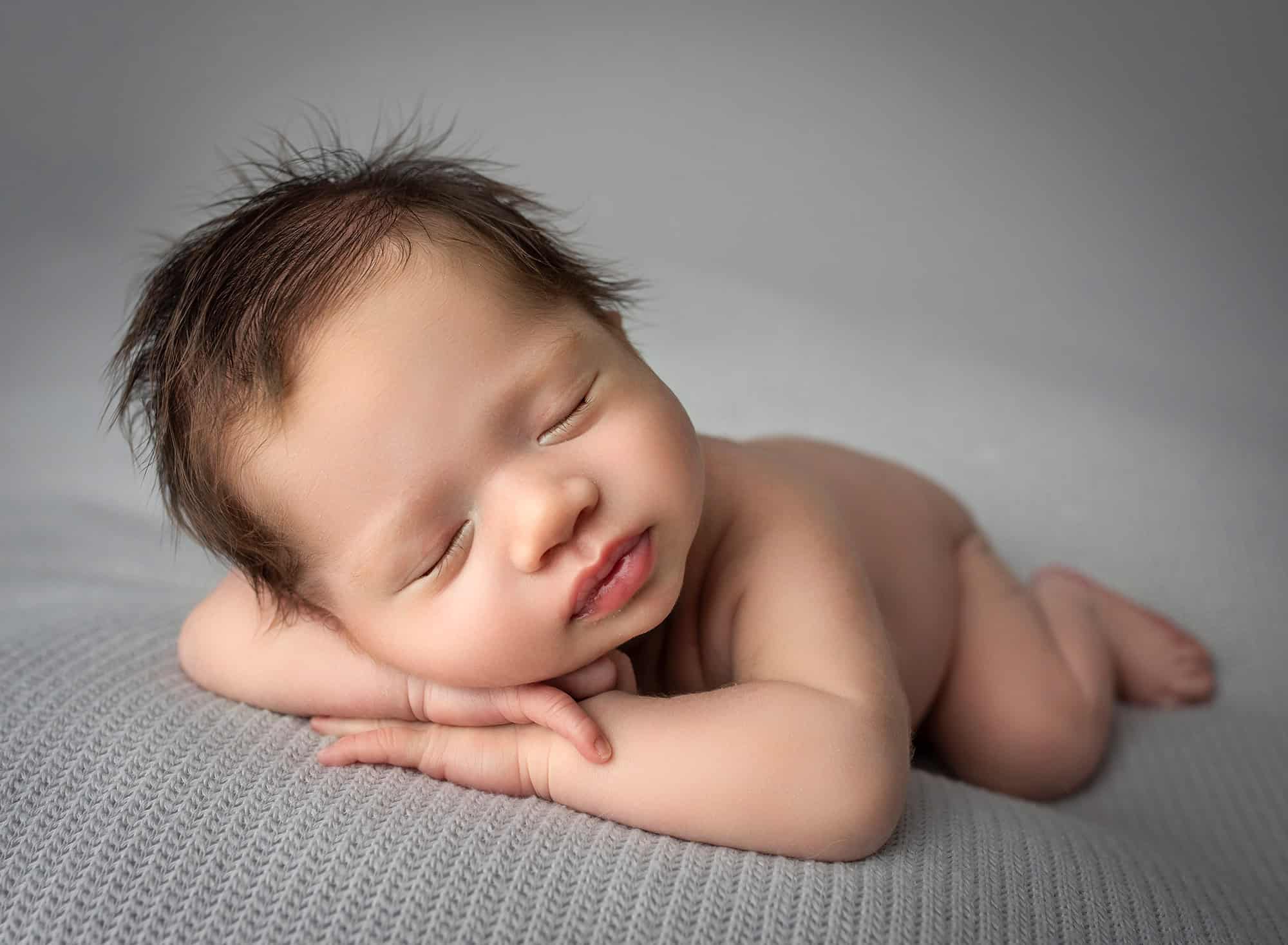 Simple poses can be done either naked and with a wrap covering their back and bottom OR wearing an outfit. If an outfit is chosen, baby will wear the same outfit for all of the simple poses to give us the greatest chance of getting the most photographs from this series. Newborn outfits are provided and will be chosen by the parents the day of the session.