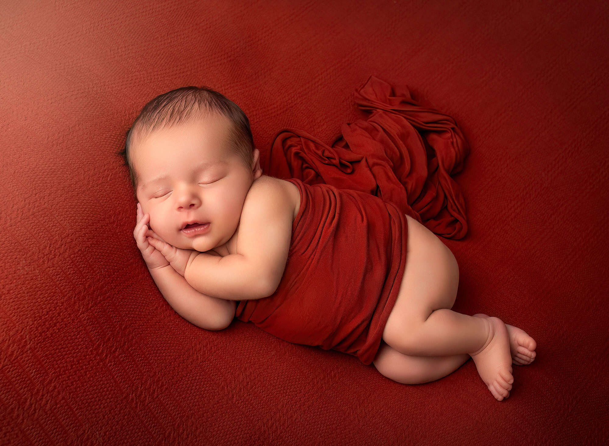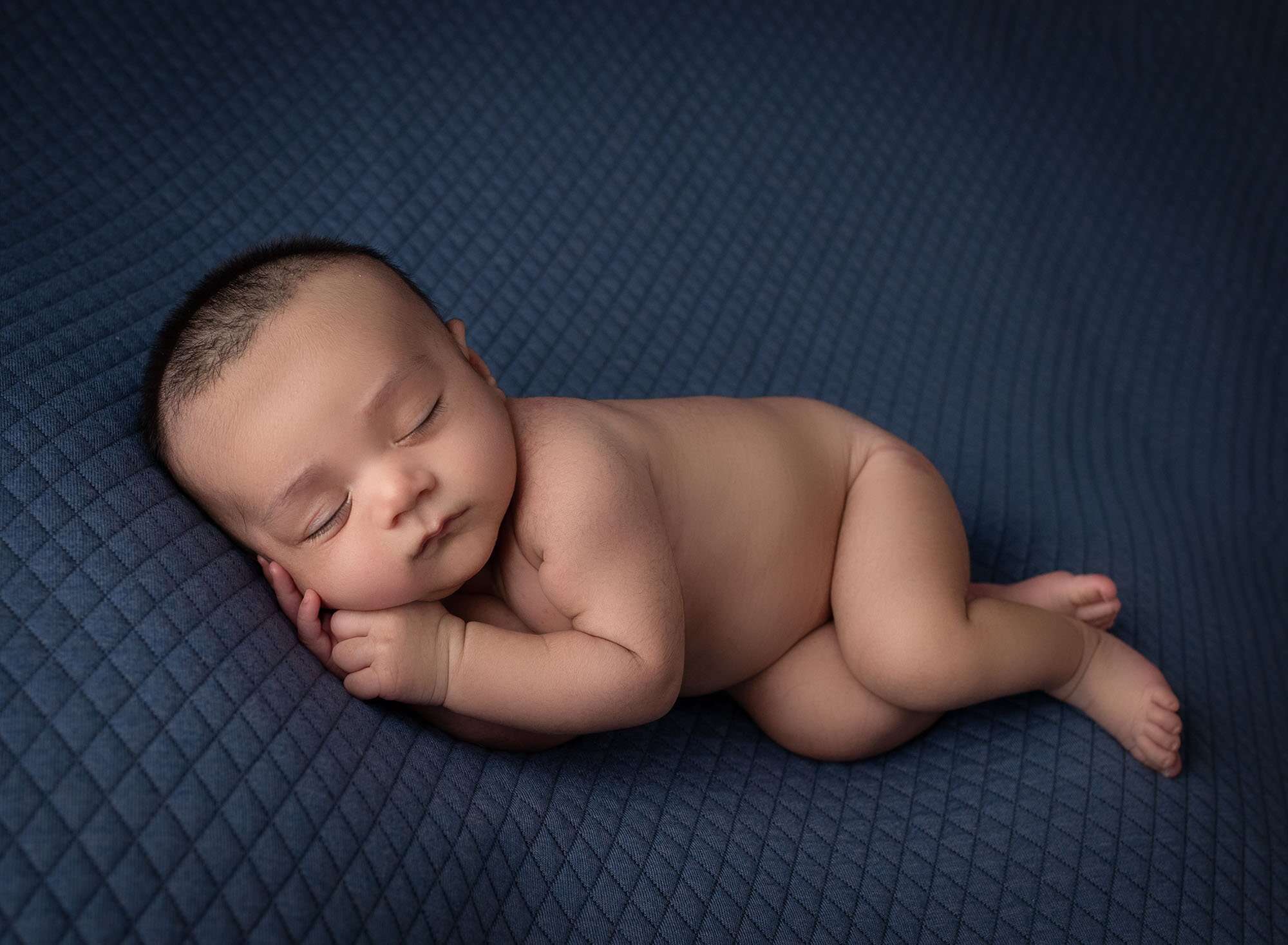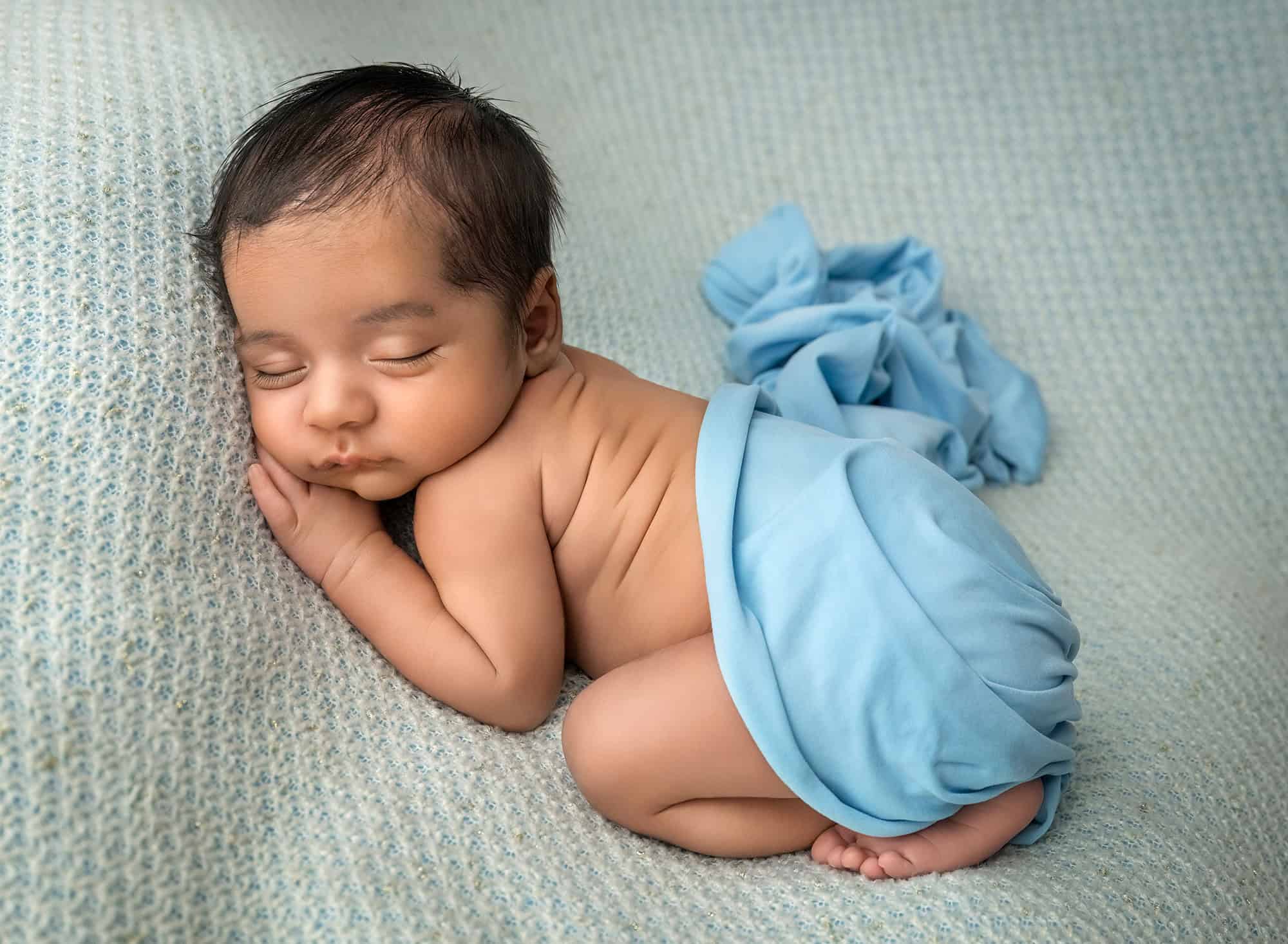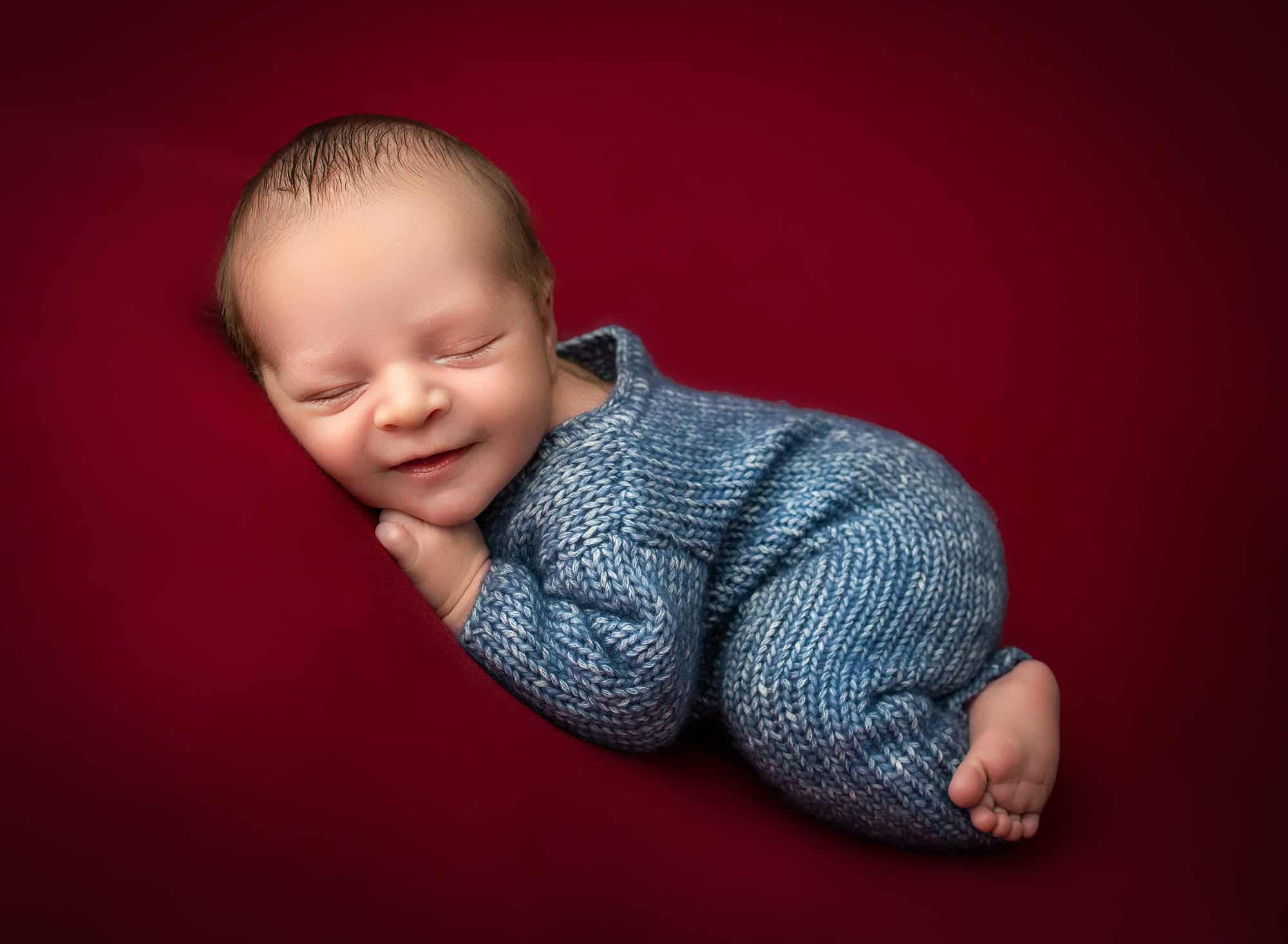 Simple poses can be done either naked and with a wrap covering their back and bottom OR wearing an outfit. If an outfit is chosen, baby will wear the same outfit for all of the simple poses to give us the greatest chance of getting the most photographs from this series. Newborn outfits are provided and will be chosen by the parents the day of the session.