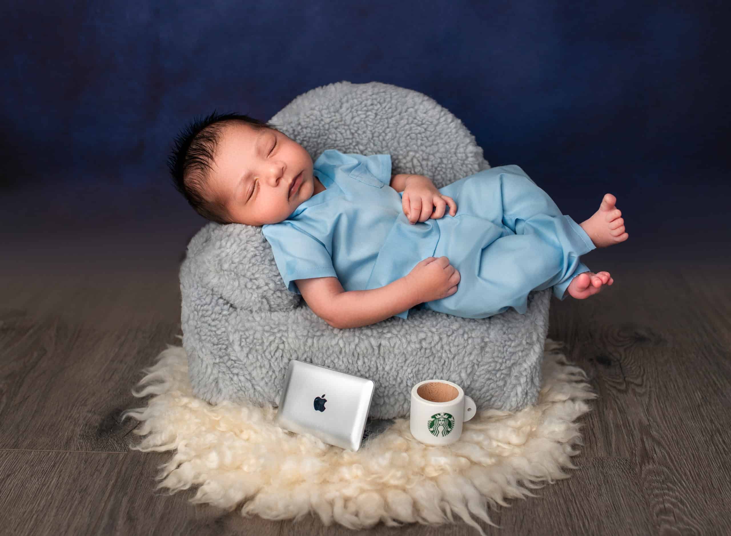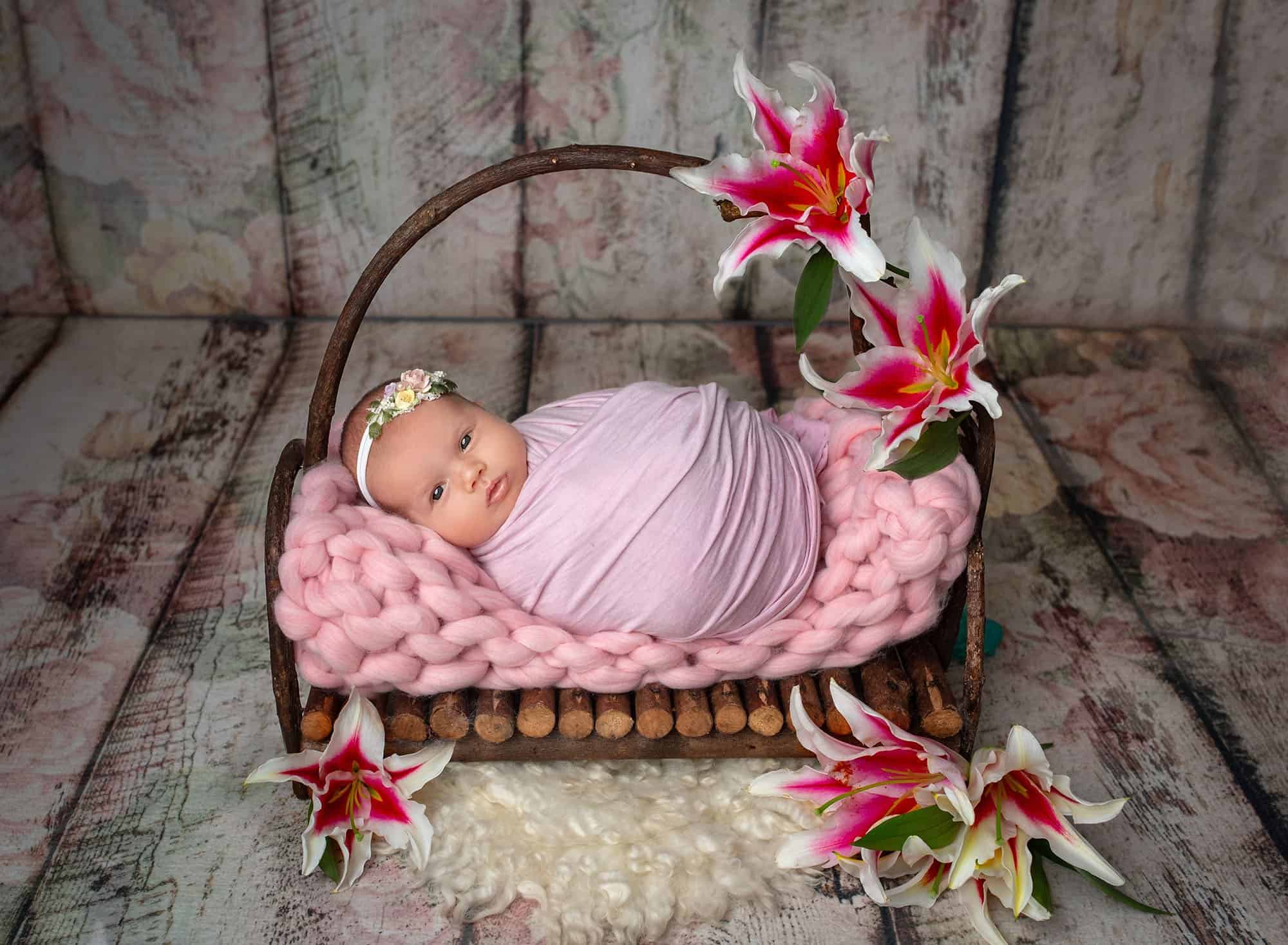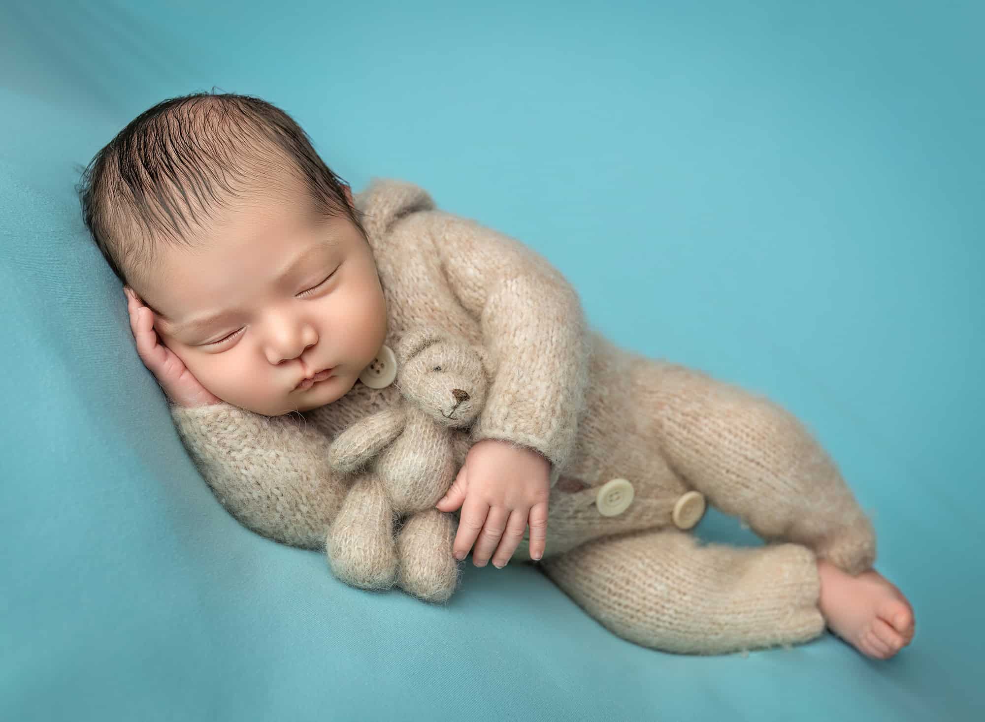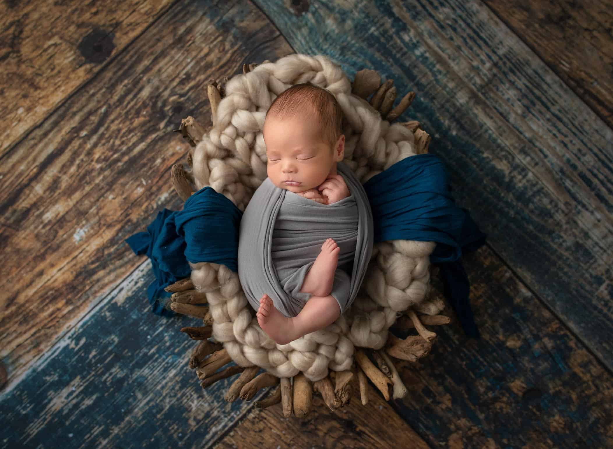 Simple poses can be done either naked and with a wrap covering their back and bottom OR wearing an outfit. If an outfit is chosen, baby will wear the same outfit for all of the simple poses to give us the greatest chance of getting the most photographs from this series. Newborn outfits are provided and will be chosen by the parents the day of the session.