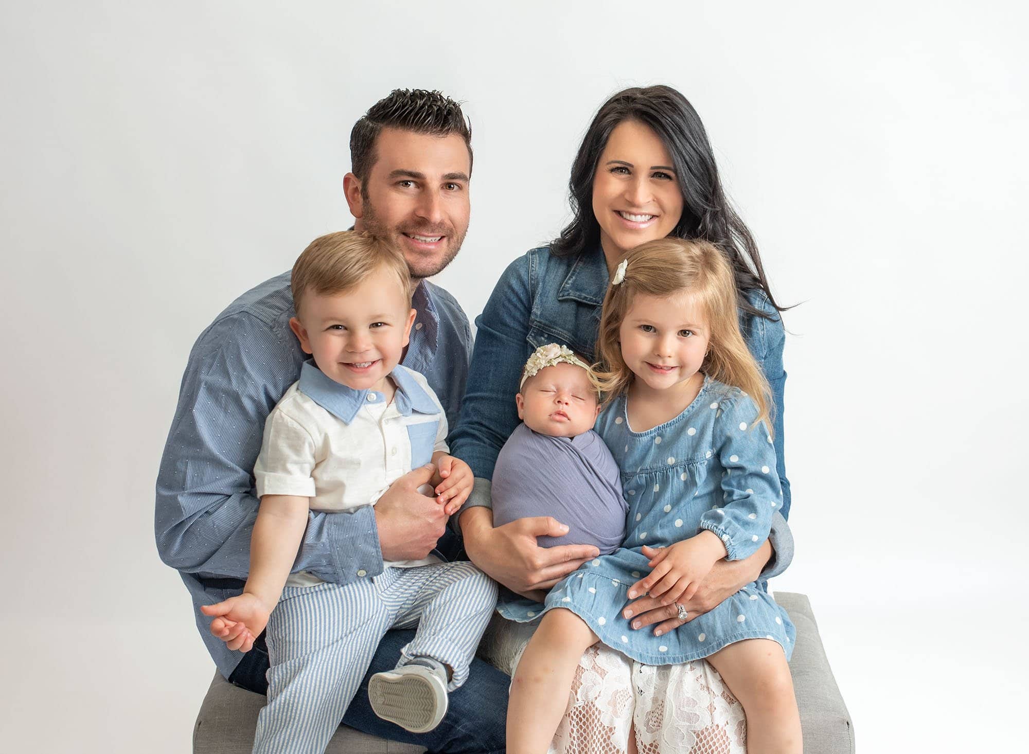 We started off Raven’s session with the whole family. Everyone was excited to be there, so we took advantage of those big smiles! Big Sister Eva and Big Brother Zane loved getting to take pictures with Raven and were so sweet giving her kisses on her head. Mom and Dad jumped in to get a full family photo, and then the Big Littles were off to play with their grandparents while we shot the rest of the session.