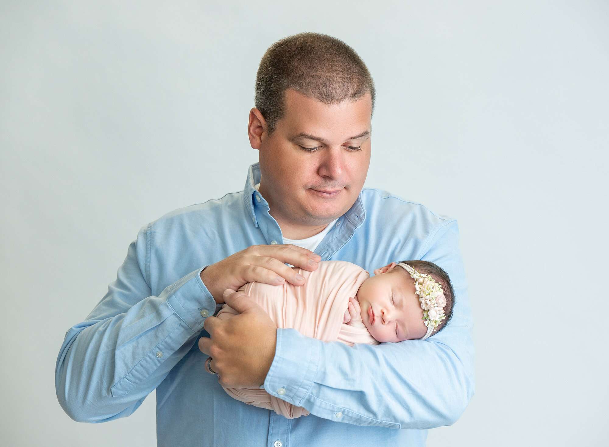 I always get a kick out of watching new dads with their babies in particular. Most moms feel confident and natural holding their babies, but it doesn’t usually come so naturally to dads. Mabel’s dad was so sweetly cautious while holding his baby girl. He’s such a masculine guy, so to watch him cradling his little girl so carefully was utterly heartwarming, and it all comes through in his protective gaze in his first family portraits with his daughter.