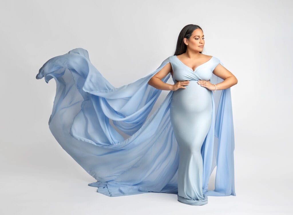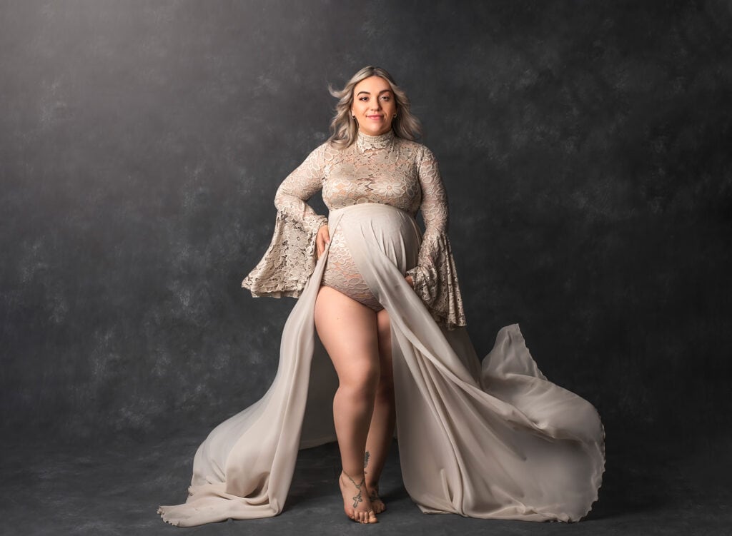 Studio photography offers climate control, privacy, and professional lighting that flatters every angle. If you’re self-conscious about your changing body or worried about weather, a studio session might be your perfect choice.