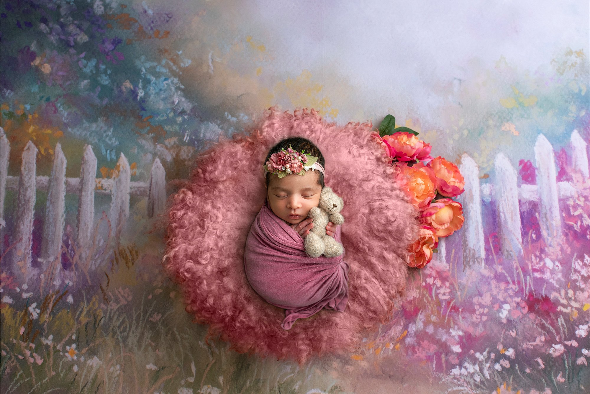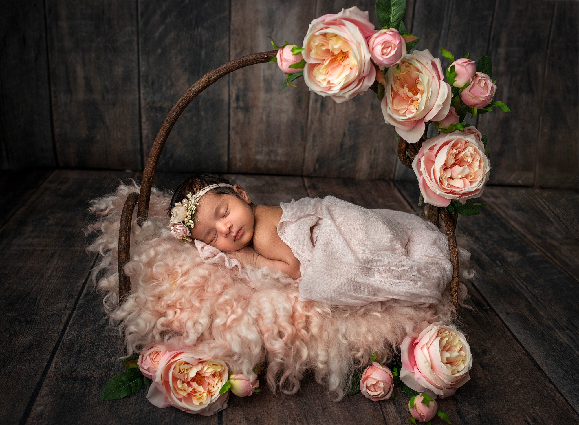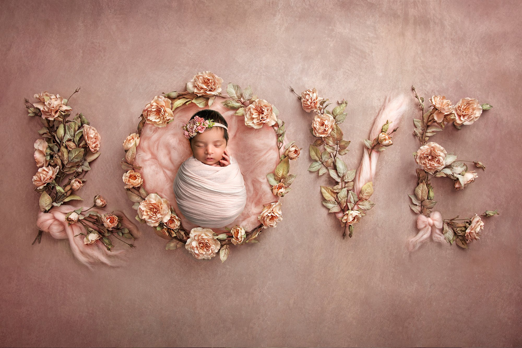 We made sure to get portraits with this entire growing family together, but truth be told, Vaishnavi’s big brother wasn’t too interested in taking photos, so we focused on little Vaishnavi for most of her newborn session. I had so much fun getting creative in working with a variety of vibrant photos, and the finished portraits have such a warm, cozy air to them, especially with little Vaishnavi sleeping so soundly in them.