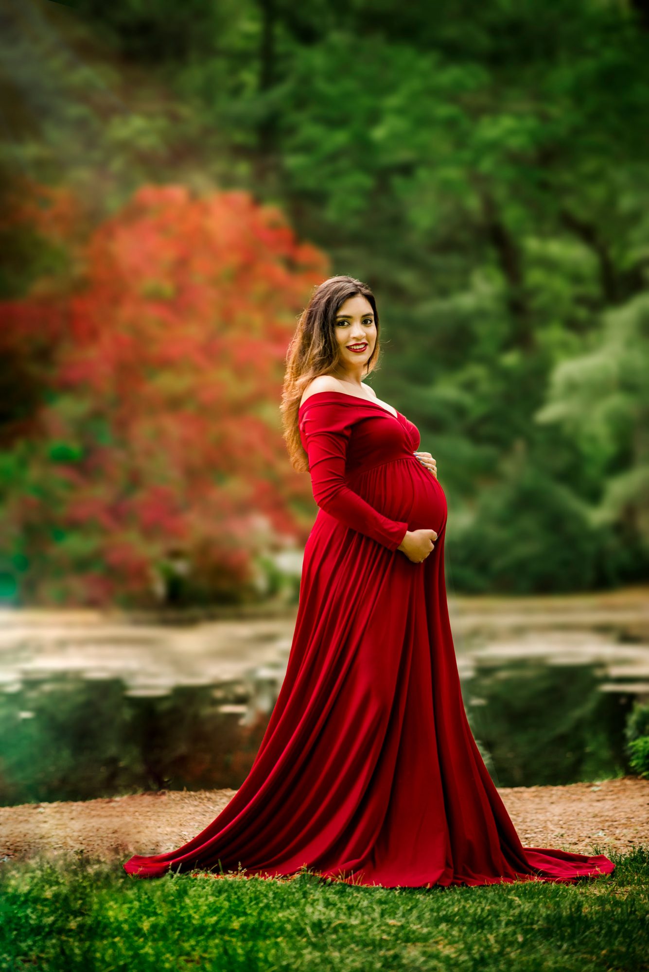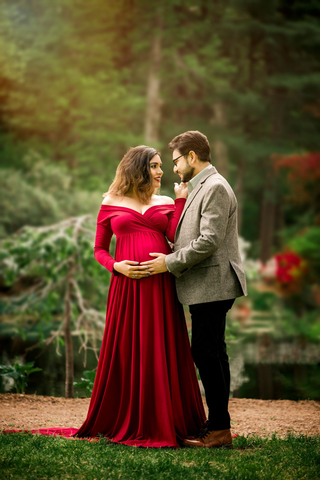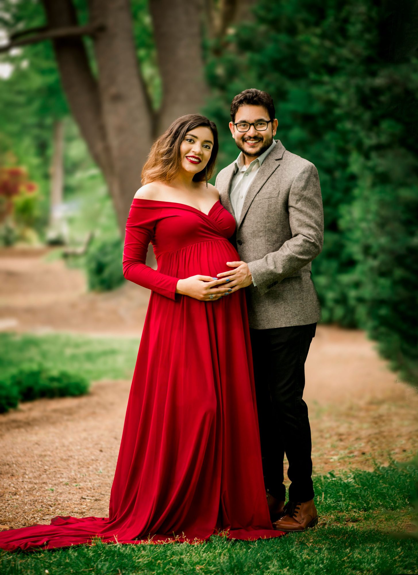 When Mom, Dad, and I started brainstorming ideas for the maternity session, they shared some with me about their heritage and how they wanted that to be displayed throughout the photographs. Both Mom and Dad are originally from India, so they wanted to use a lot of color in their photographs. Speaking of color, Mom wore 2 dresses from my collection to add some perfect pops of color and to give her different looks.