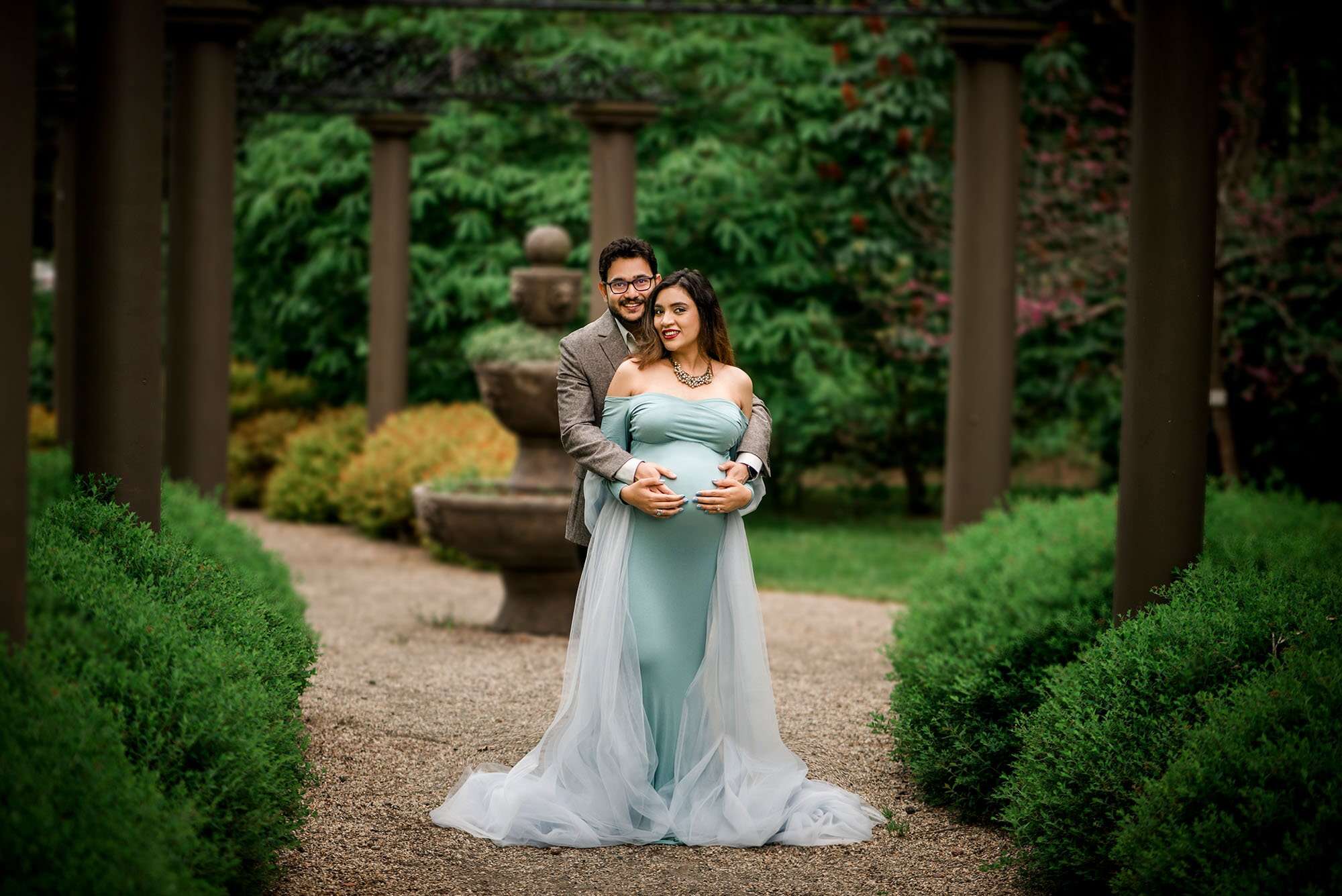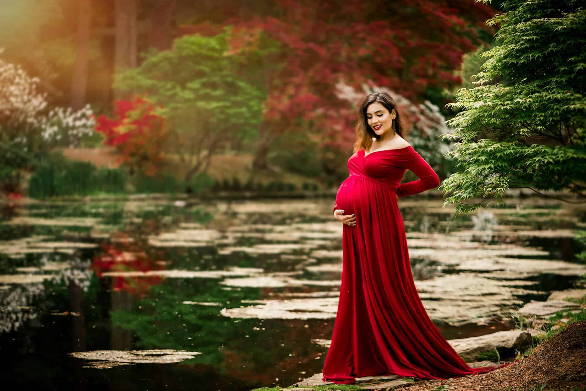 I absolutely love the photo of Mom and Dad sitting on the grass with the rock walls behind them. You can barely make out a rock gazebo structure in the back as well. It is just so whimsy and serene; it is absolutely lovely. And doesn’t Mom look lovely standing in front of the pond, holding her belly, and thinking about how wonderful it will be when her baby is finally here? I can’t wait to meet your little angel!