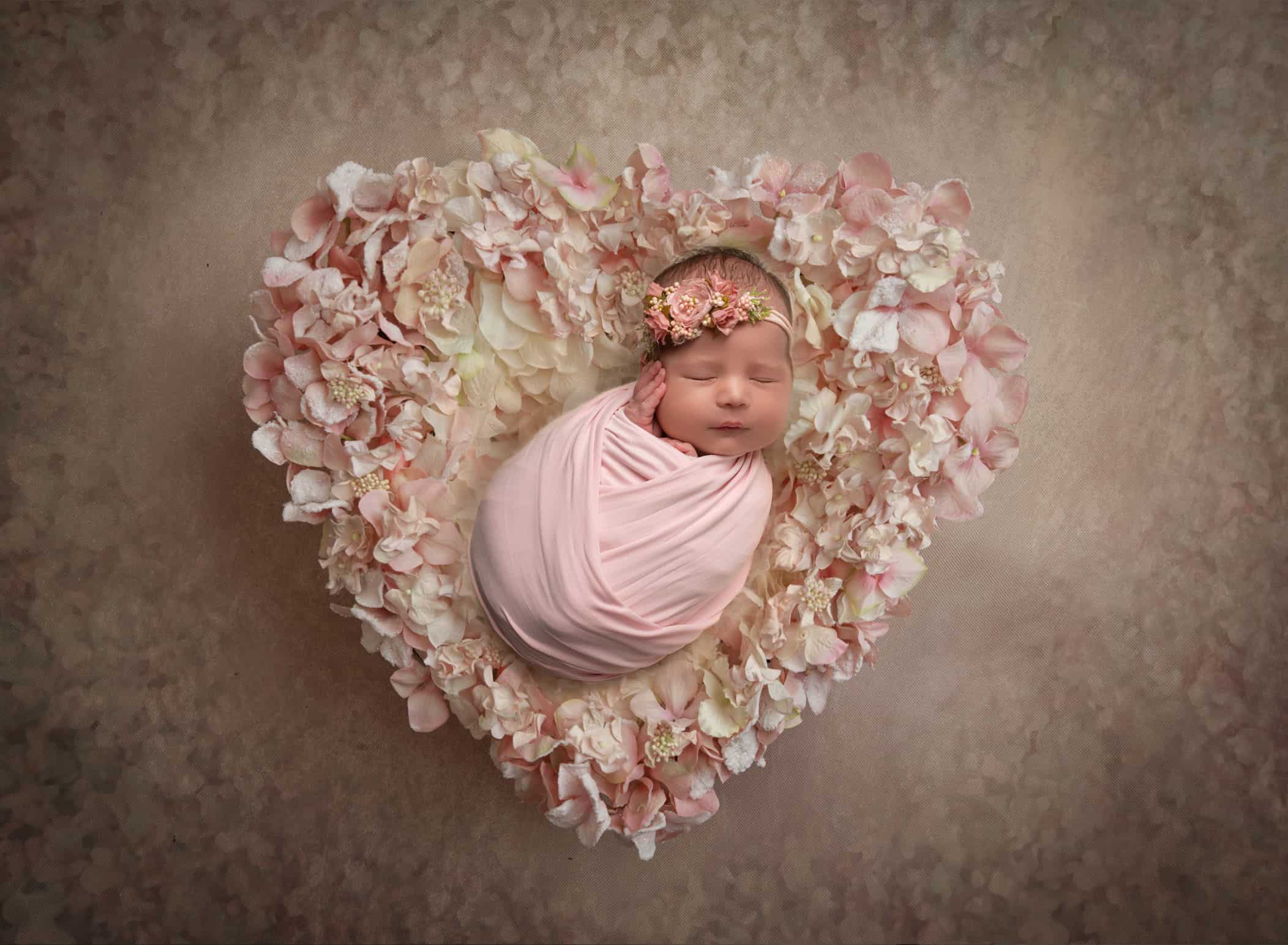 Sleeping in a rose petal heart nest, Nora was so peaceful.
