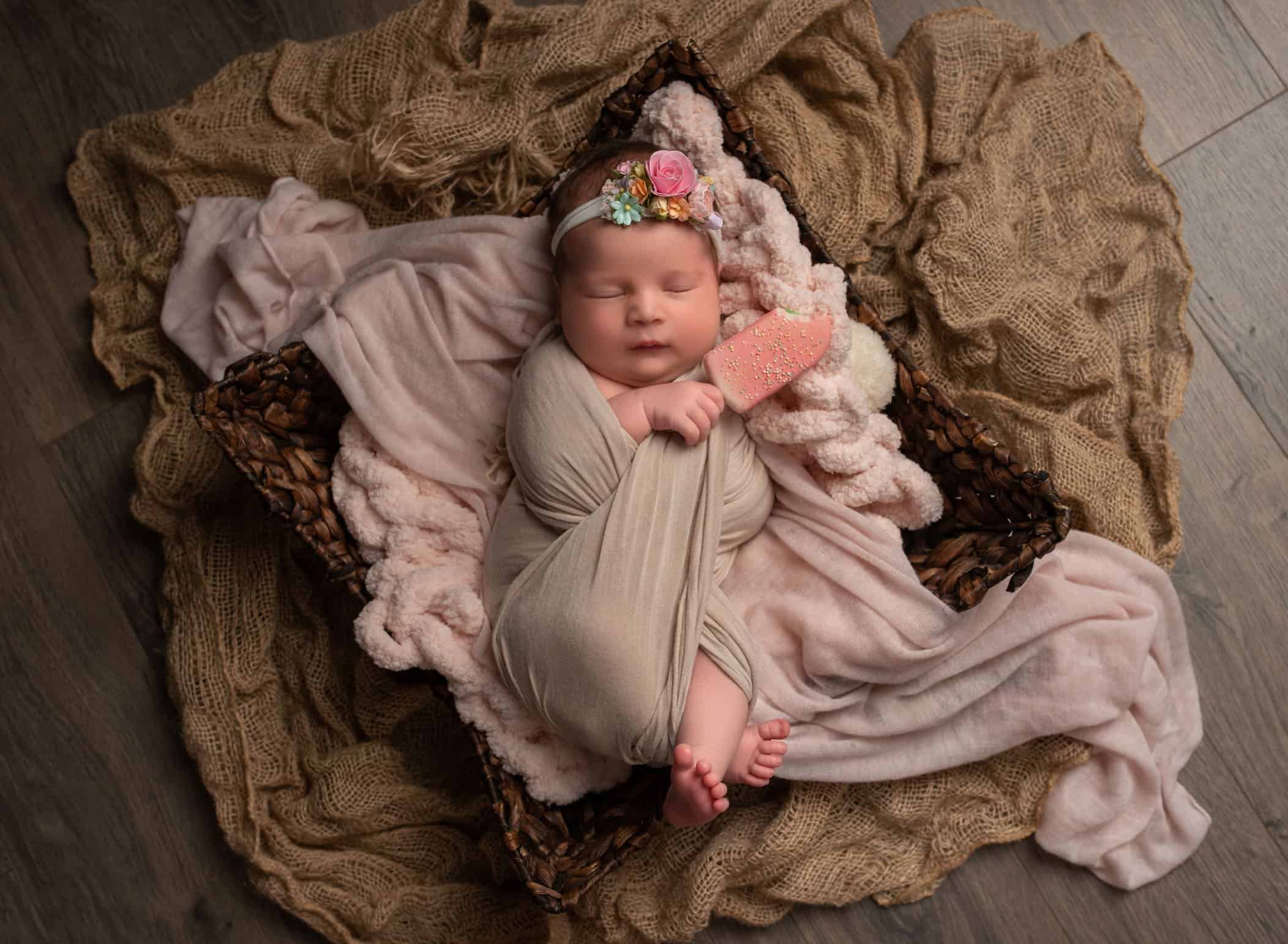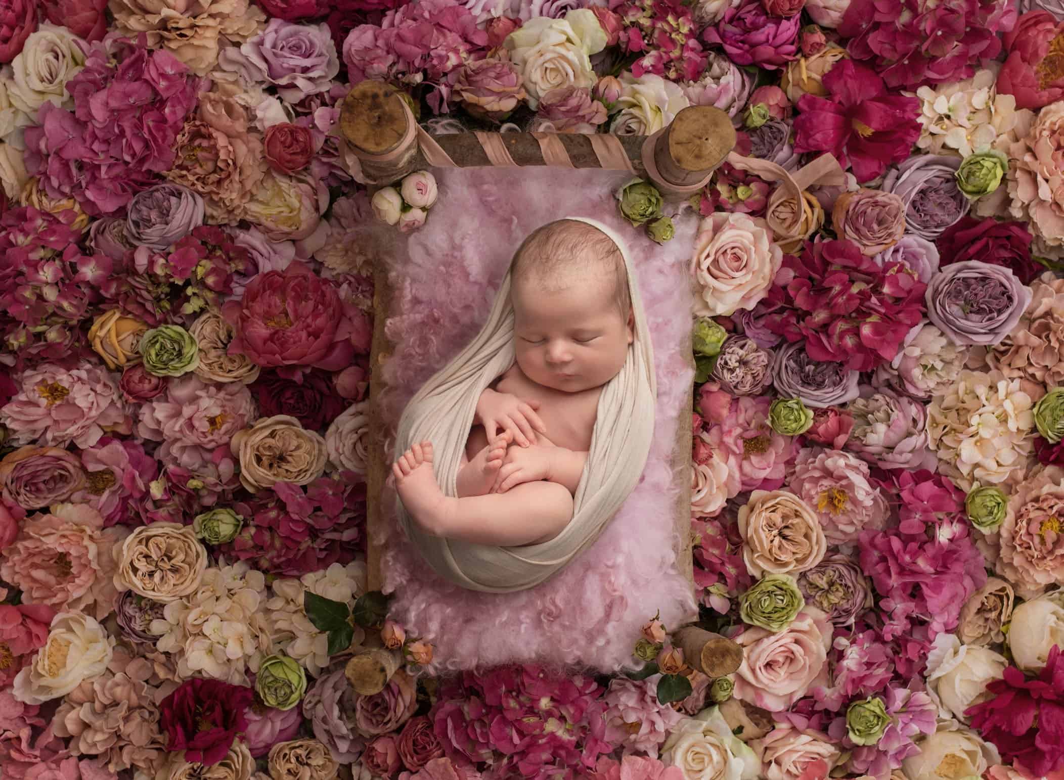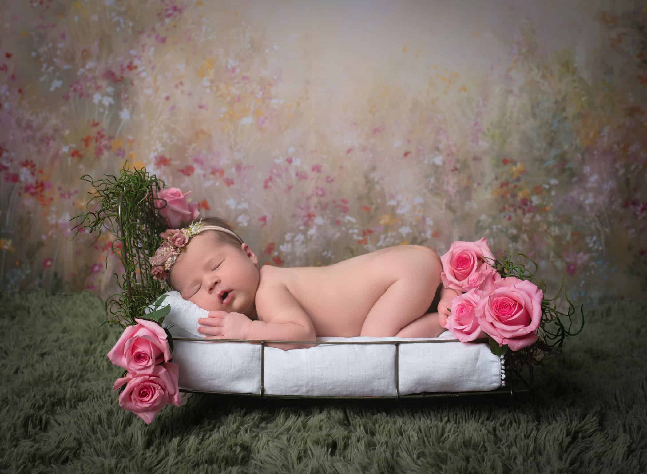 Well, you can’t get more roses in this photograph, that’s for sure! You can almost smell the perfume from the flowers just by looking at this adorable photo of Nora resting in her little bed.