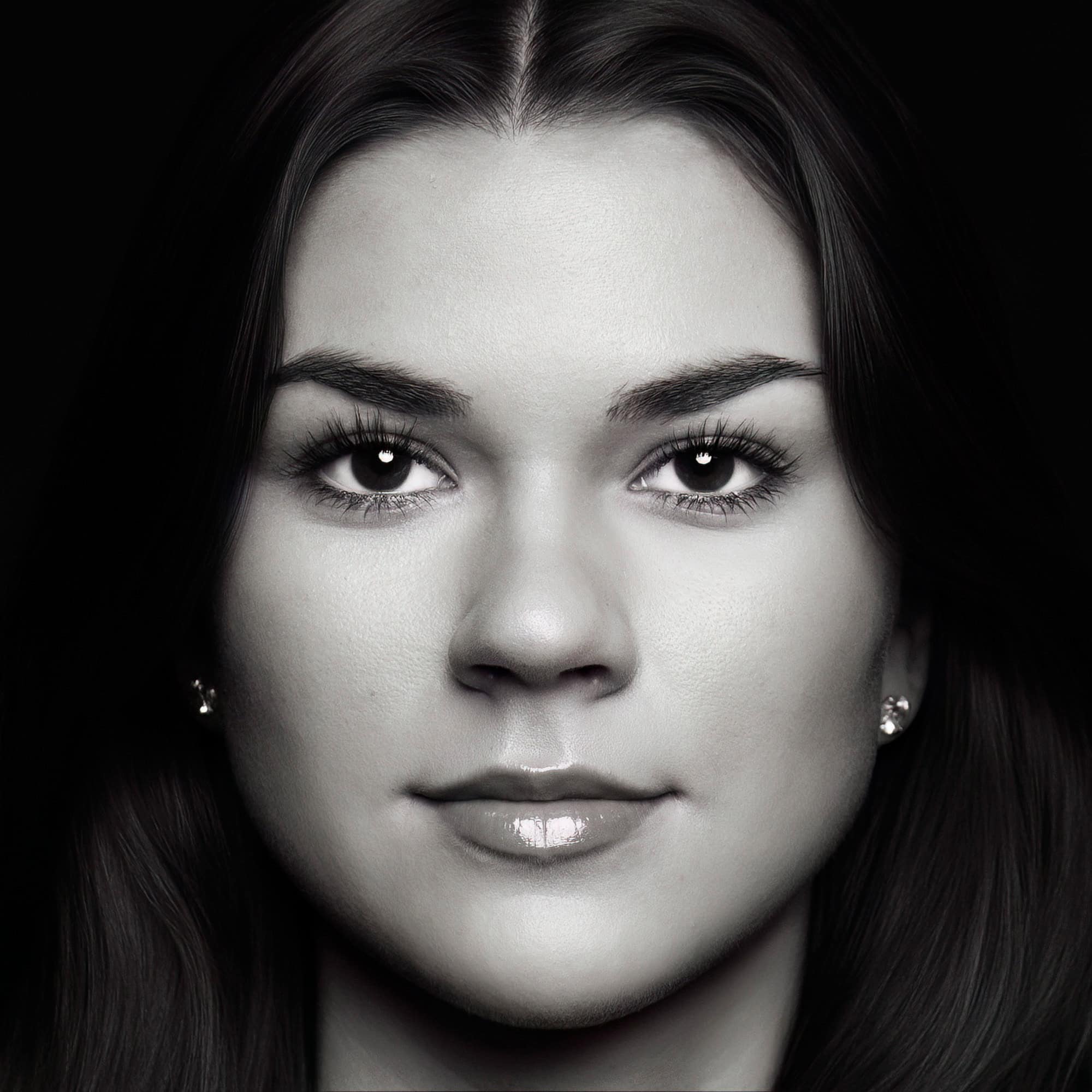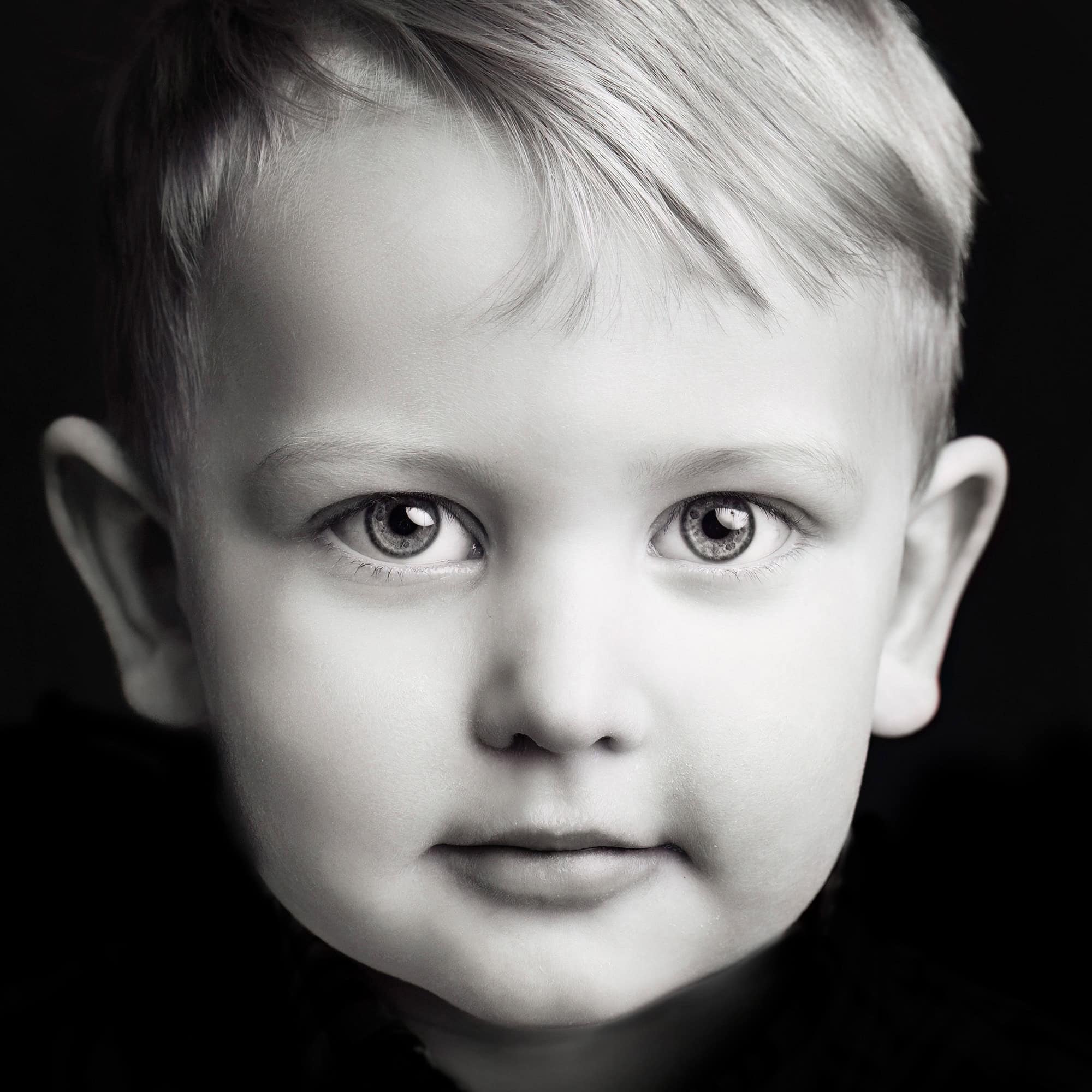 Just your child’s face— photographed as a classic black-and-white close-up portrait that allows every detail of their face and expression to take center stage.