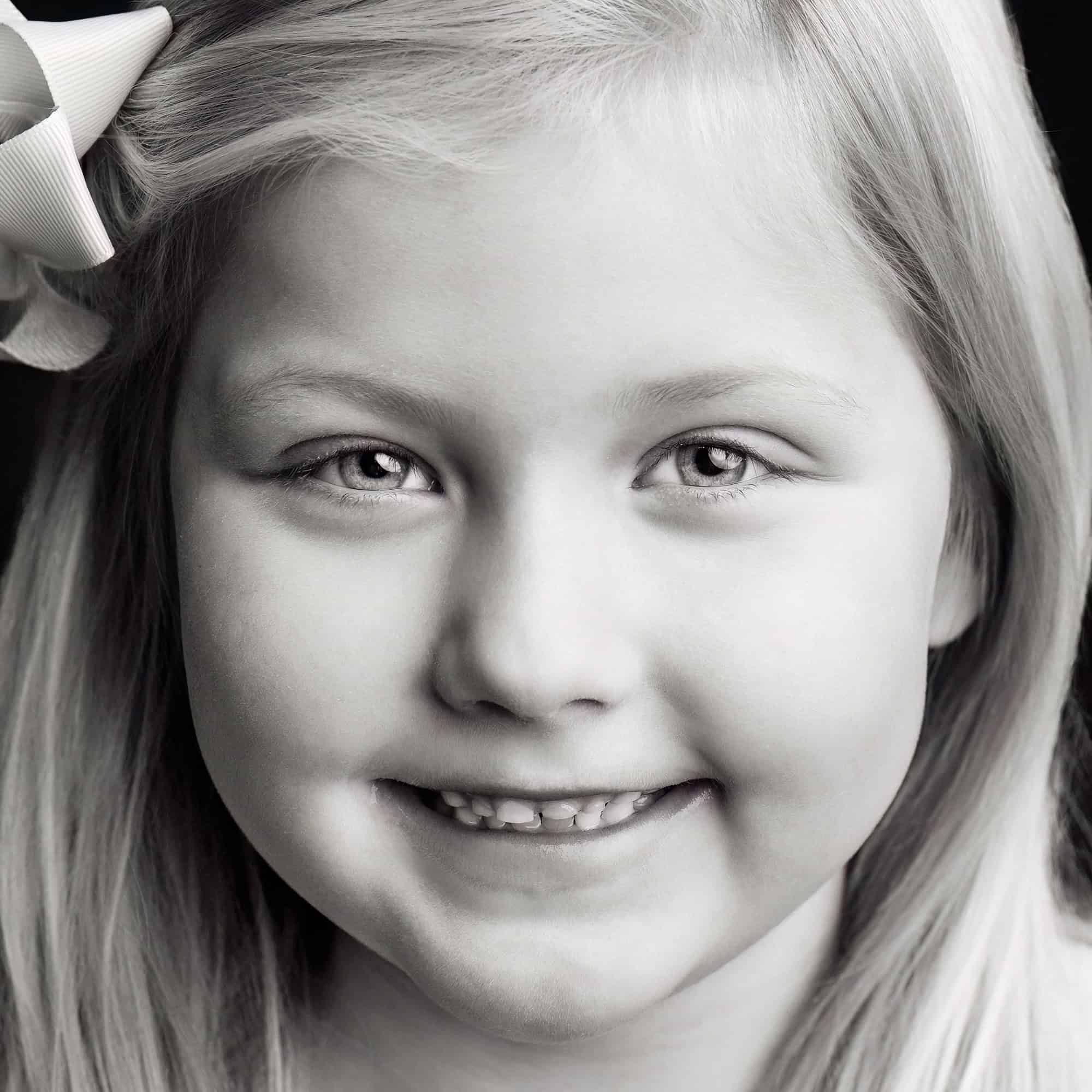 Just your child’s face— photographed as a classic black-and-white close-up portrait that allows every detail of their face and expression to take center stage.