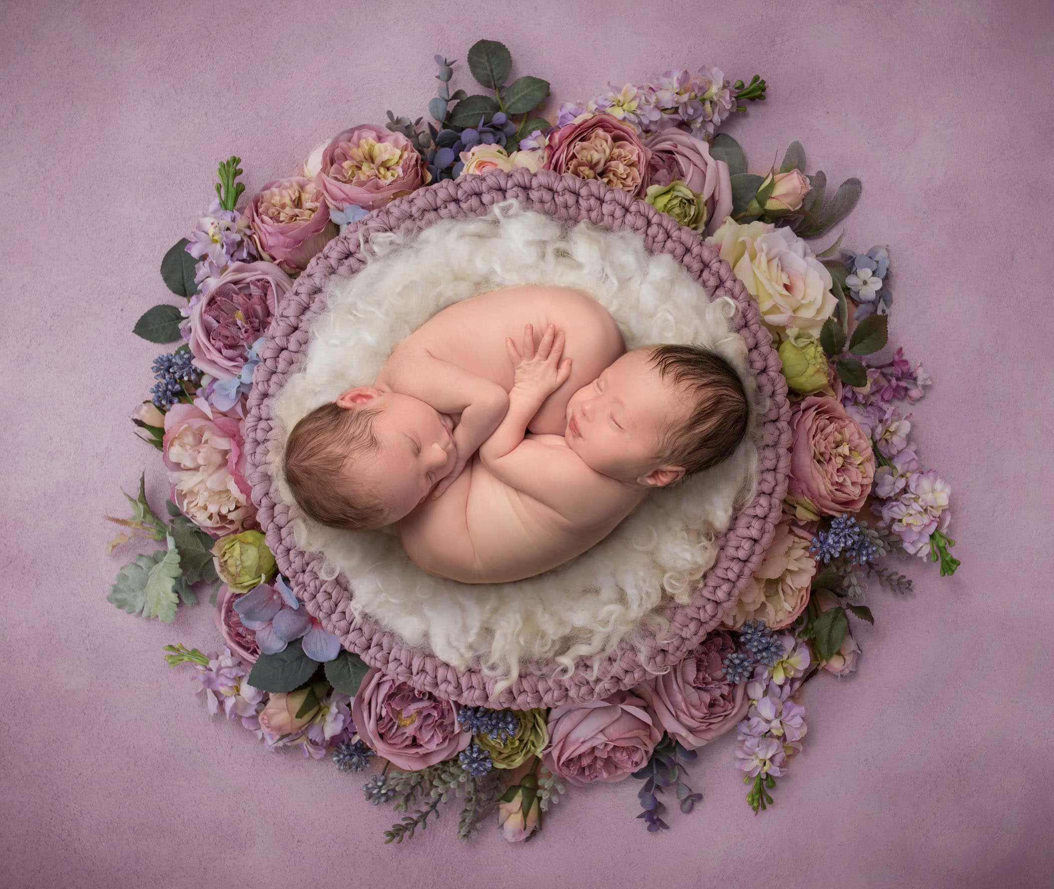 The challenge when posing twins is that they react to not only your touch and movements but also to the touch and movement of their sibling. So things can take a bit longer to work out and to perfect. But, luckily these twin girls settled down pretty quickly once they were placed together.