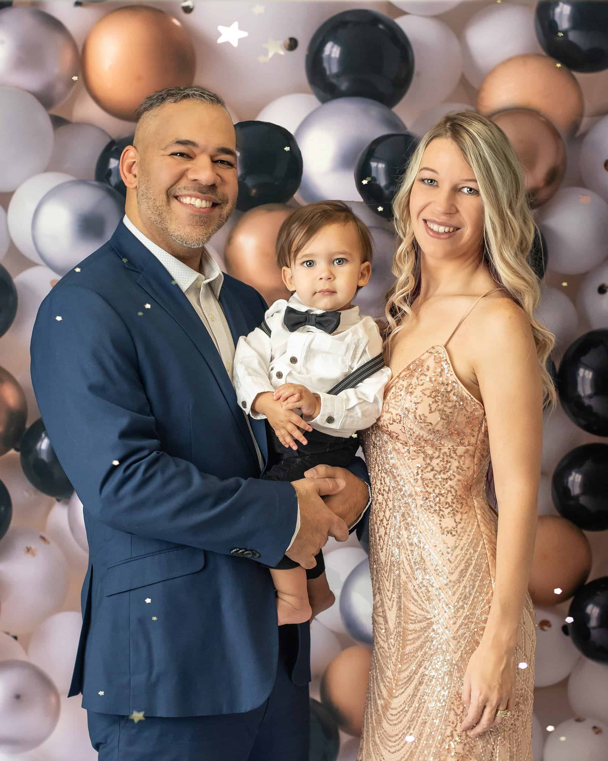 Because Greyson was born on New Year’s Eve, Mom wanted to bring in that theme for some special portraits. They all dressed up in gorgeous evening wear and we turned the photo session into a party! The setting is so uniquely reminiscent of New Year’s Eve and perfectly fitting for a baby who helped his parents ring in the new year in such a special way.